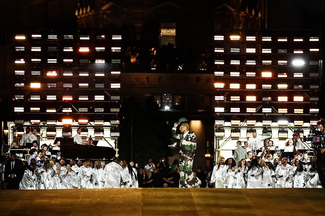 The LV 2024 Spring/Summer Men's Collection is the first collection brought by Pharrell Williams, the creative director of men's wear, for the brand. The most eye-catching visual element of the entire show was the newly designed "Damoflage" pattern, which combines the classic Damier checkerboard and pixel-style camouflage design, injecting American street style into the brand's collection elements. Even Pharrell himself took the stage to take his final bow in a Damoflage printed suit.
