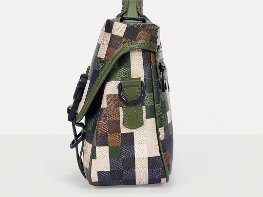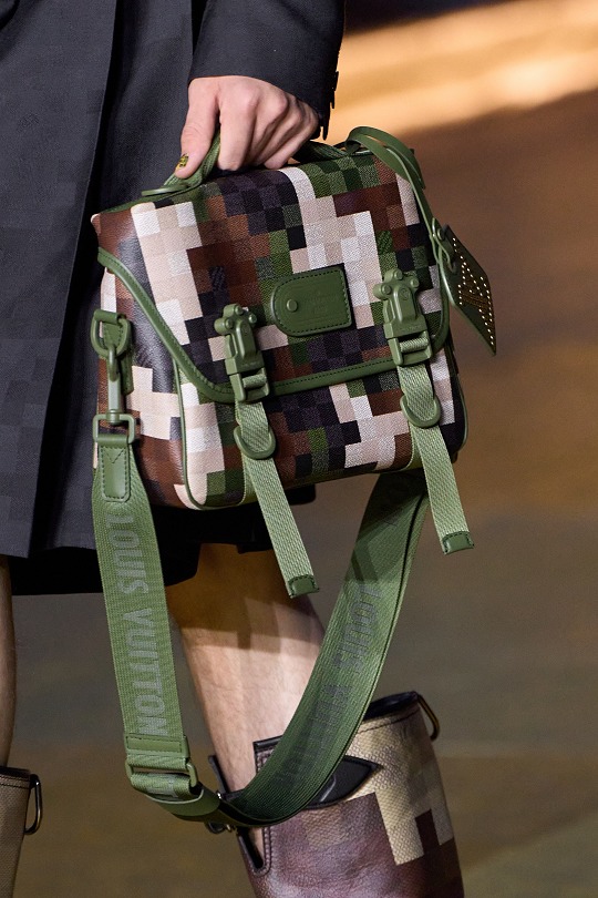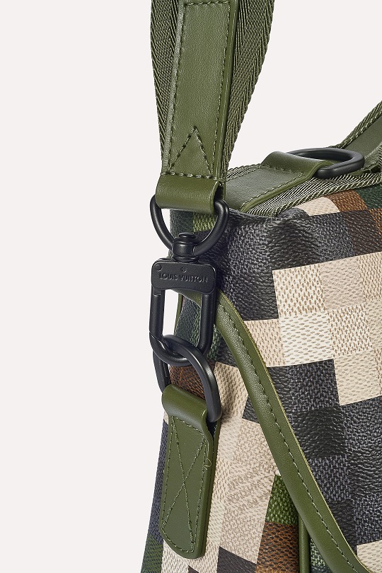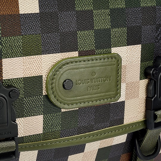 The overall tone of the bag is green, beige and gray-black. The black hardware accessories and green leather trims are calm and handsome. The LV logo made of gold round nails is decorated on the detachable leather tag, adding a touch of dandy gentleman style to the bag, which is also the detail that most reflects Pharrell's personal style.