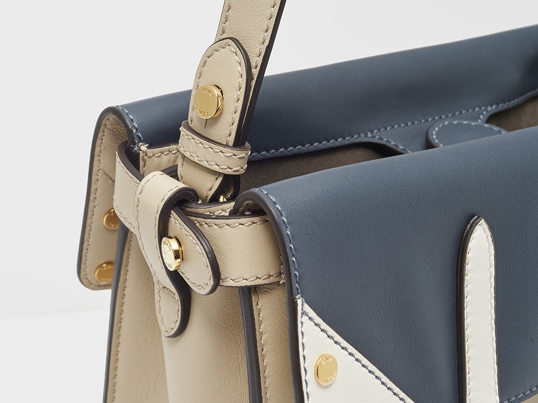 The details are also very considerate, with two-color leather stitching on both sides of the flap, using two colors of stitching to hide the stitching traces. The front and back of the handle are also designed in two colors , one side corresponds to the beige body of the bag, and the other side echoes the white triangles on both sides.