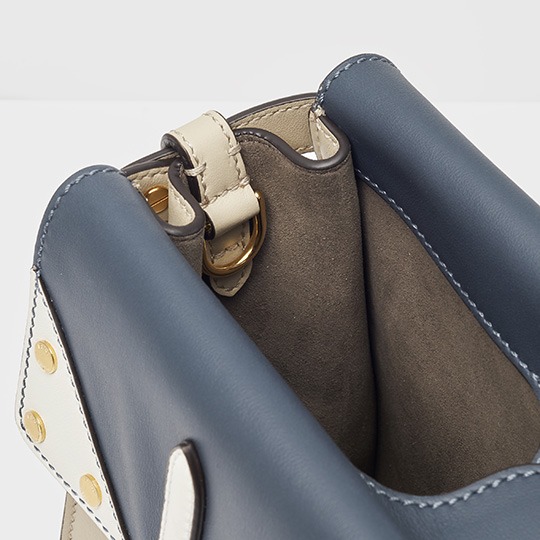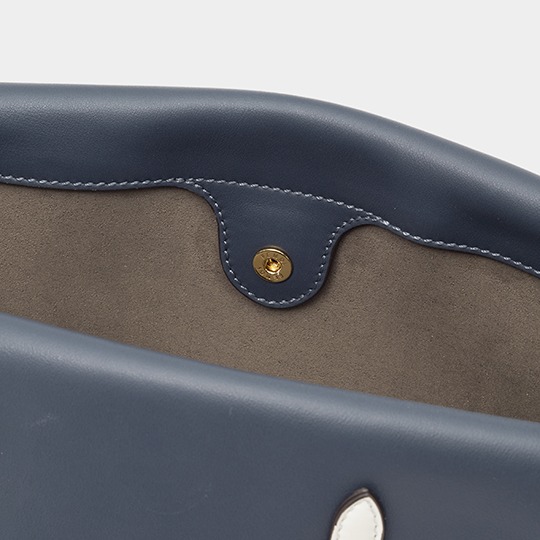 You can also flip up one side of the bag and fold it to the other side, with two handles hanging on the same side, revealing a hint of navy blue edges. Pass your wrist through the handles and hold the bottom of the bag, casually carry it at your side as a clutch, or add a long shoulder strap to carry it cross-body, like a messenger's messenger bag .