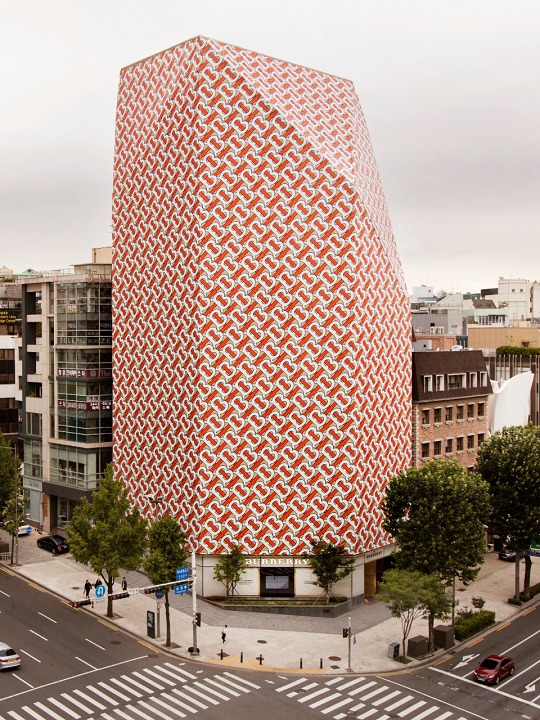 Burberry has been using a new sans serif logo and TB exclusive logo since August 2018, designed by creative director Riccardo Tisci and British graphic designer Peter Saville. It uses honey color as the base, with orange T and white B letters interlaced to form a pattern.