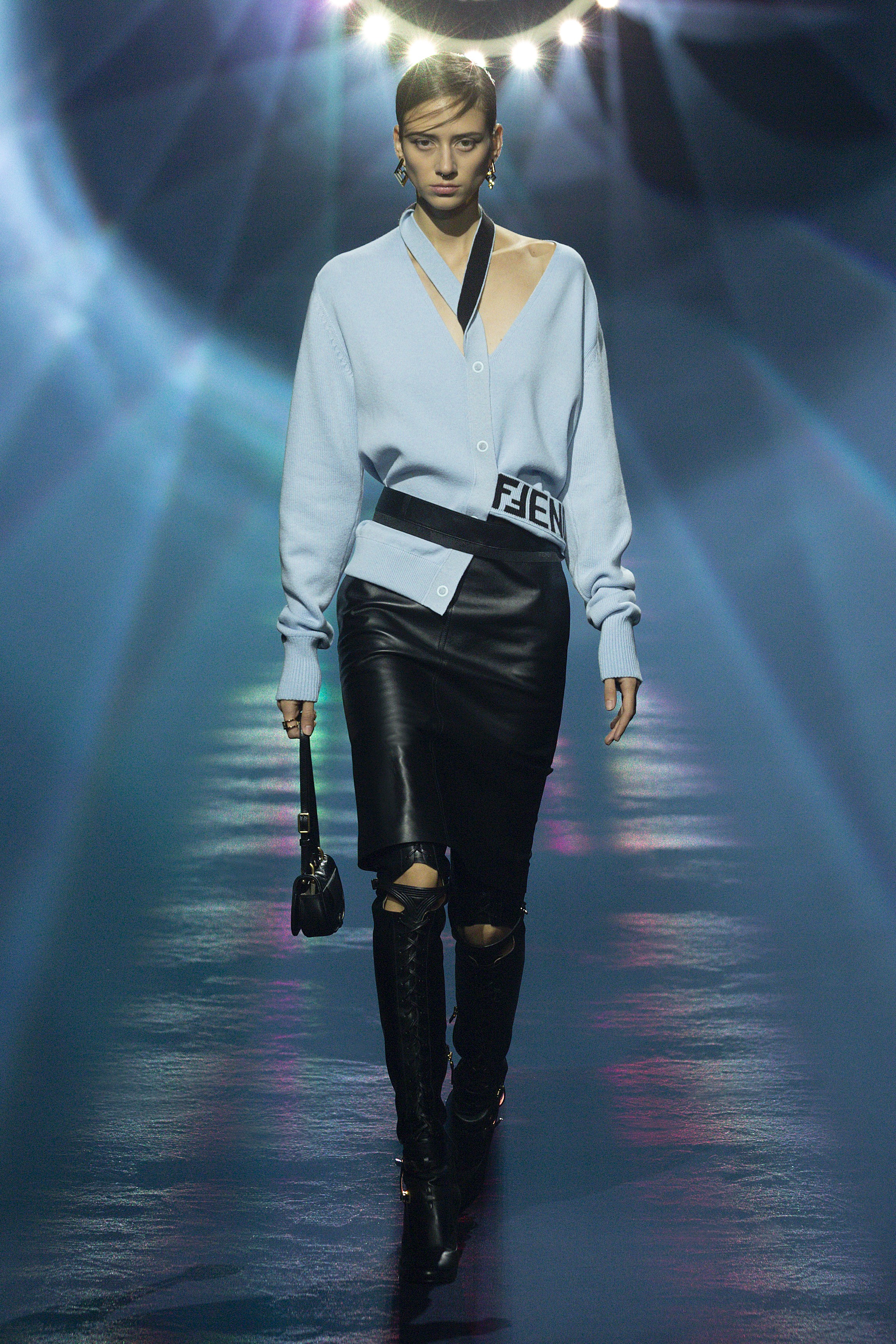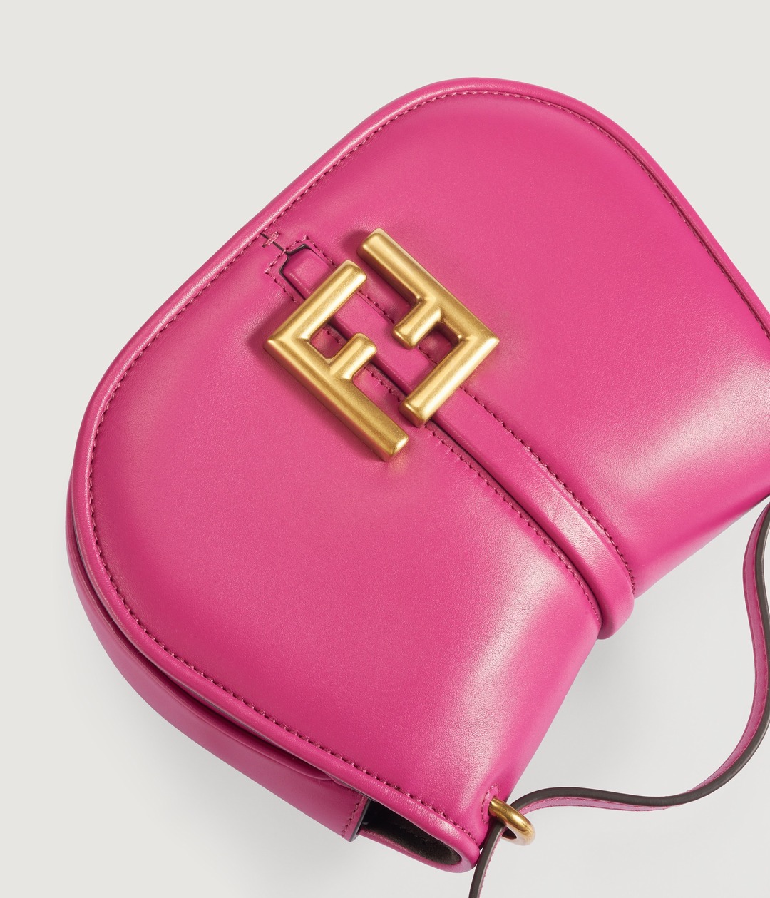 Echoing the exquisite style and pragmatism of the ready-to-wear collection, the FENDI C'mon handbag adopts a delicate and smooth saddle silhouette . The highlight is the oblique cut of the bag top , which forms a blunt angle of about 160°, adding a pure and neat temperament. In contrast to the arc-shaped bag body, it reveals the feminine power of both hardness and softness.