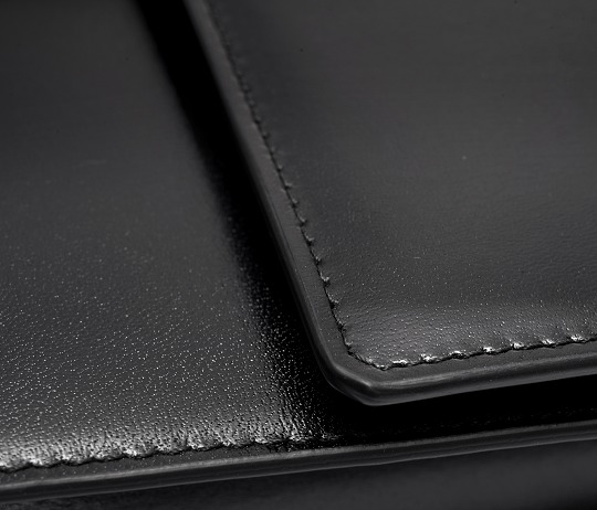 The whole body is made of carefully selected Box calfskin , which has a smooth and delicate touch and visually rich gloss. The black stitching outlines the contour, which is invisible on the black bag.