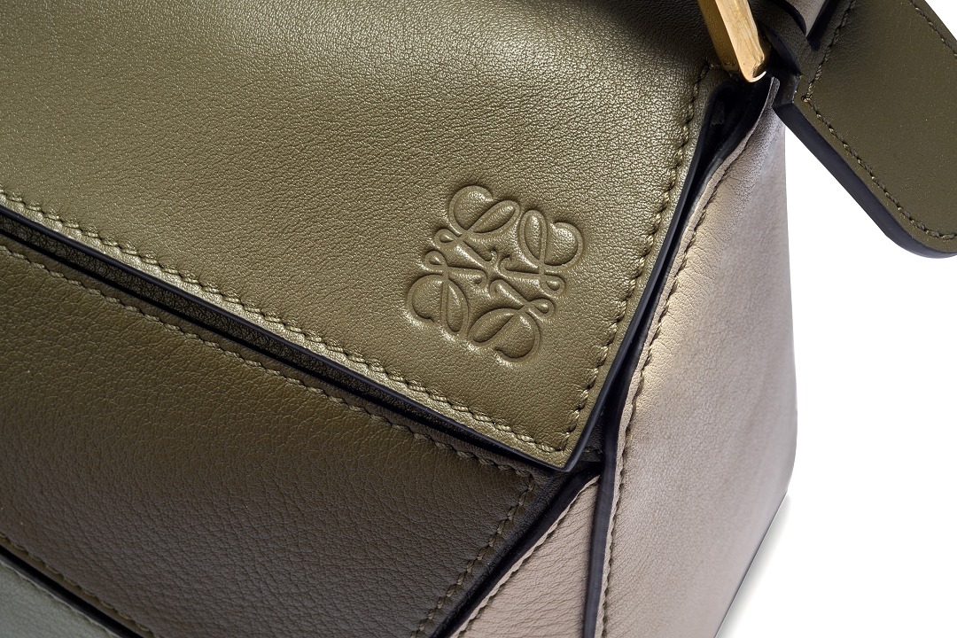 The bag's flap and hardware details are embossed with LOEWE's iconic Anagram logo , which was designed by Spanish artist Vicente Vela in 1970. Four cursive L letters are arranged in a square mirror pattern. The logo has been updated many times over the past 40 years. The current pattern was born in 2014 and was designed by current creative director Jonathan Anderson and French design company M/M Paris. The font is simple and modern.