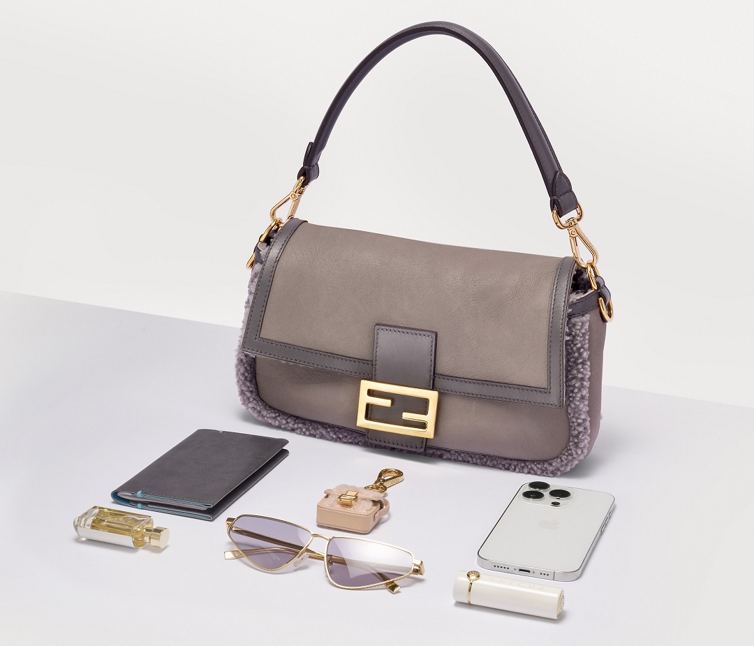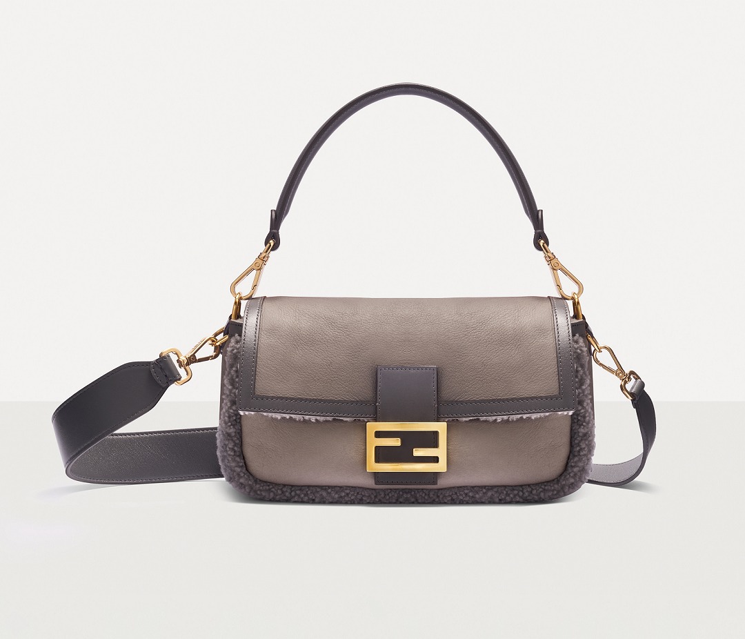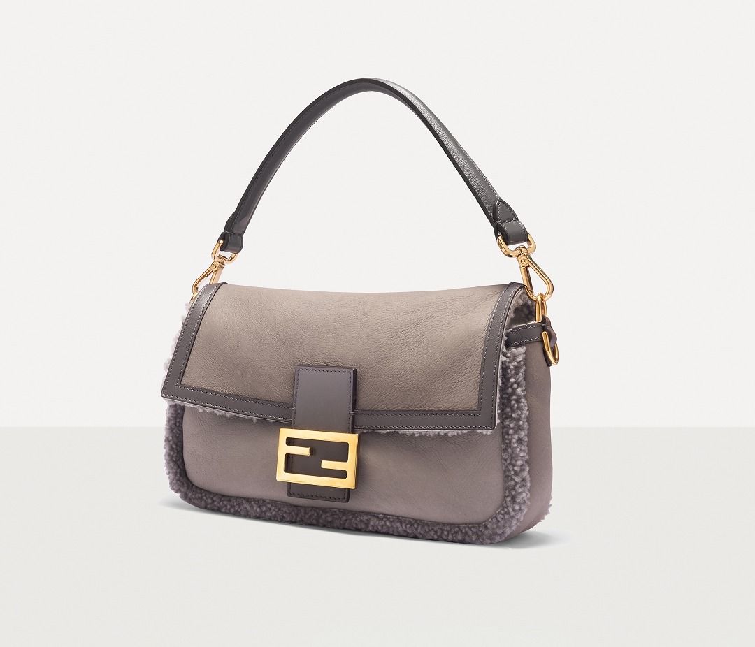 FENDI, which started out as a fur brand, is always very familiar with the use of fur elements, and launches eye-catching fur items every season. This Baguette handbag is made of soft and delicate Nappa sheepskin , and the gray color is restrained and calm, which is particularly consistent with the "female protagonist" image created by FENDI.
