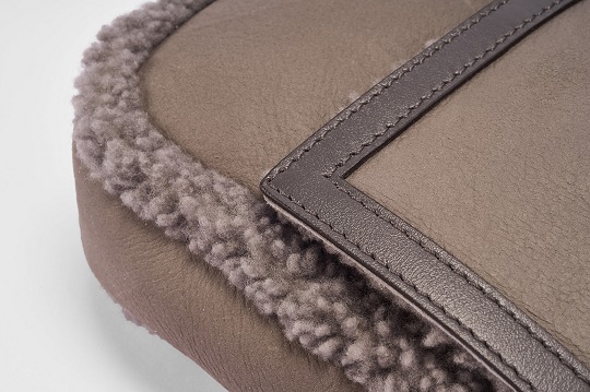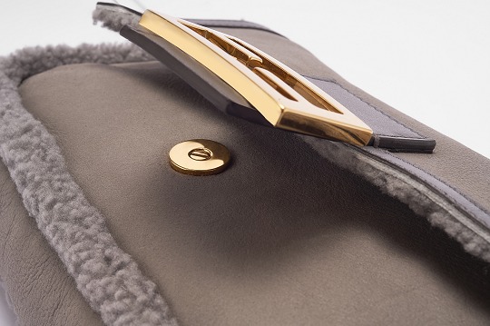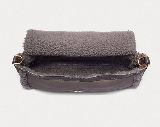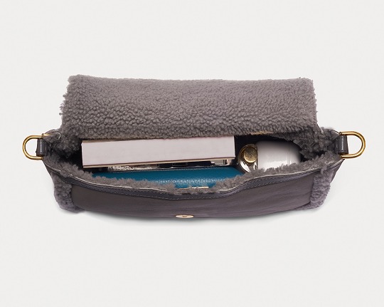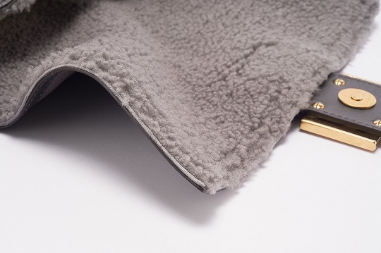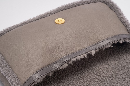 Dark grey sheepskin outlines the flap edge, buckle and shoulder strap details of the bag. The same color combination looks more layered. Soft and fluffy lambskin embellishes the edge of the bag, which looks playful and warm. The lining of the bag is made of a whole piece of lambskin material, and you will feel warm the moment you put your hand into the bag.