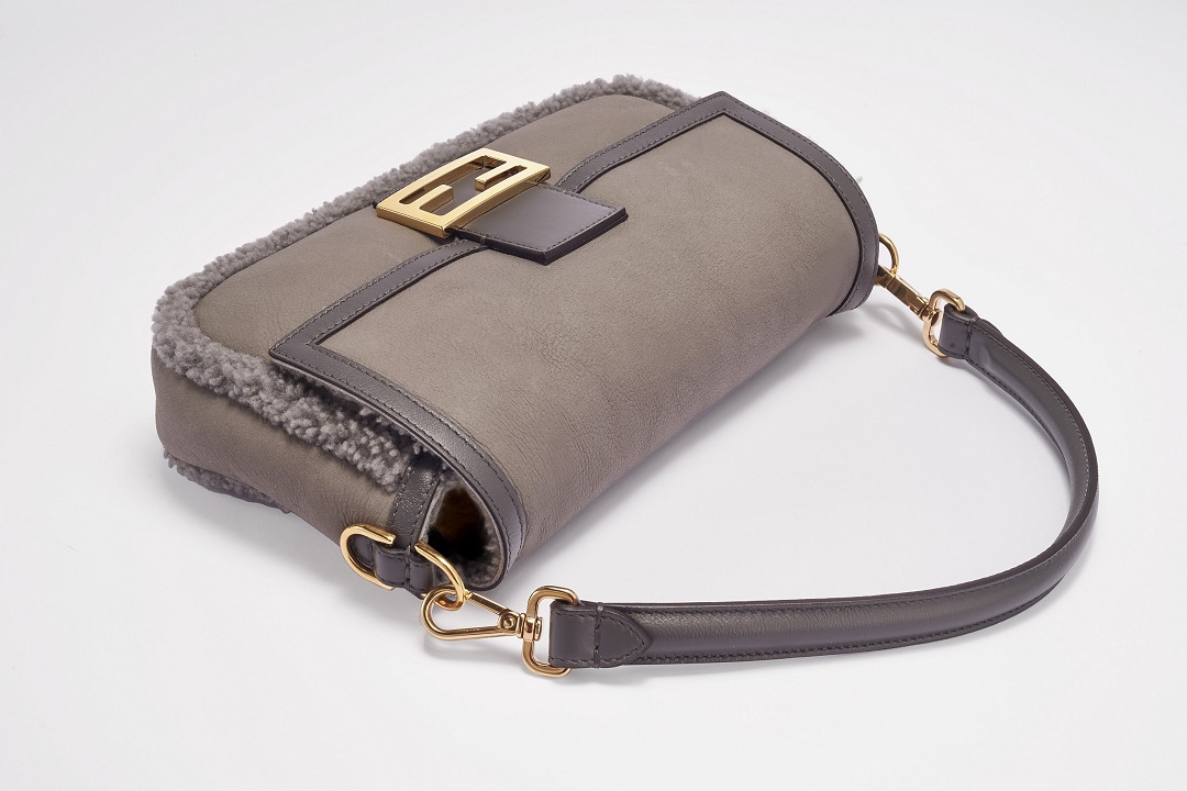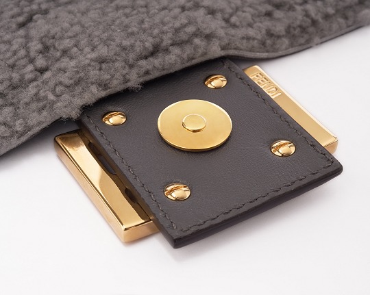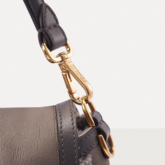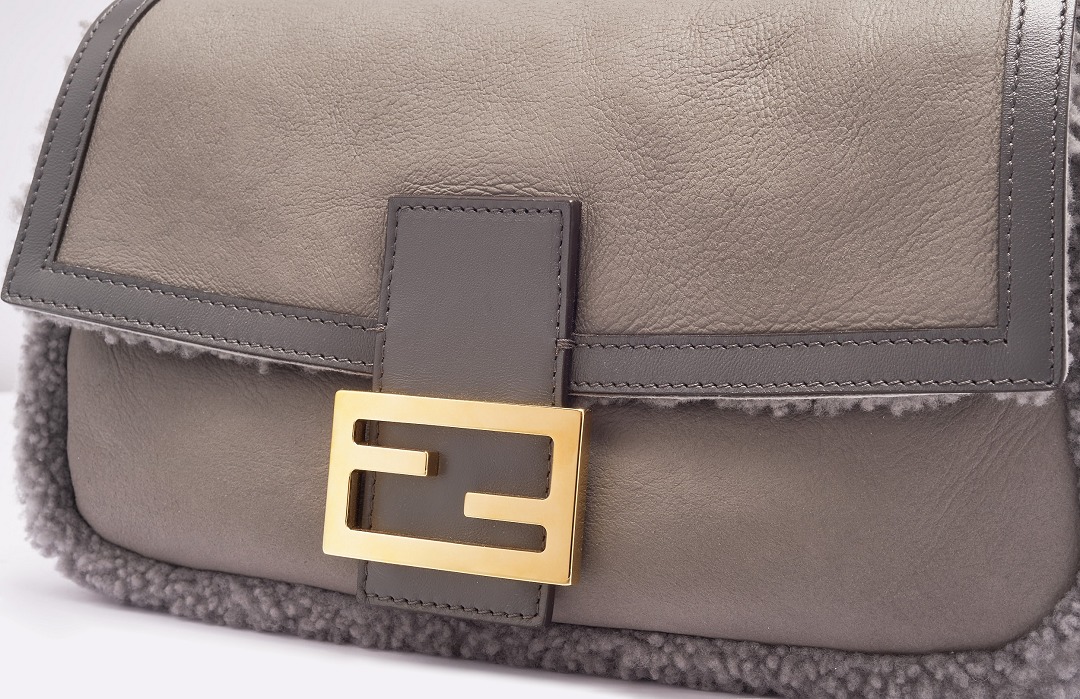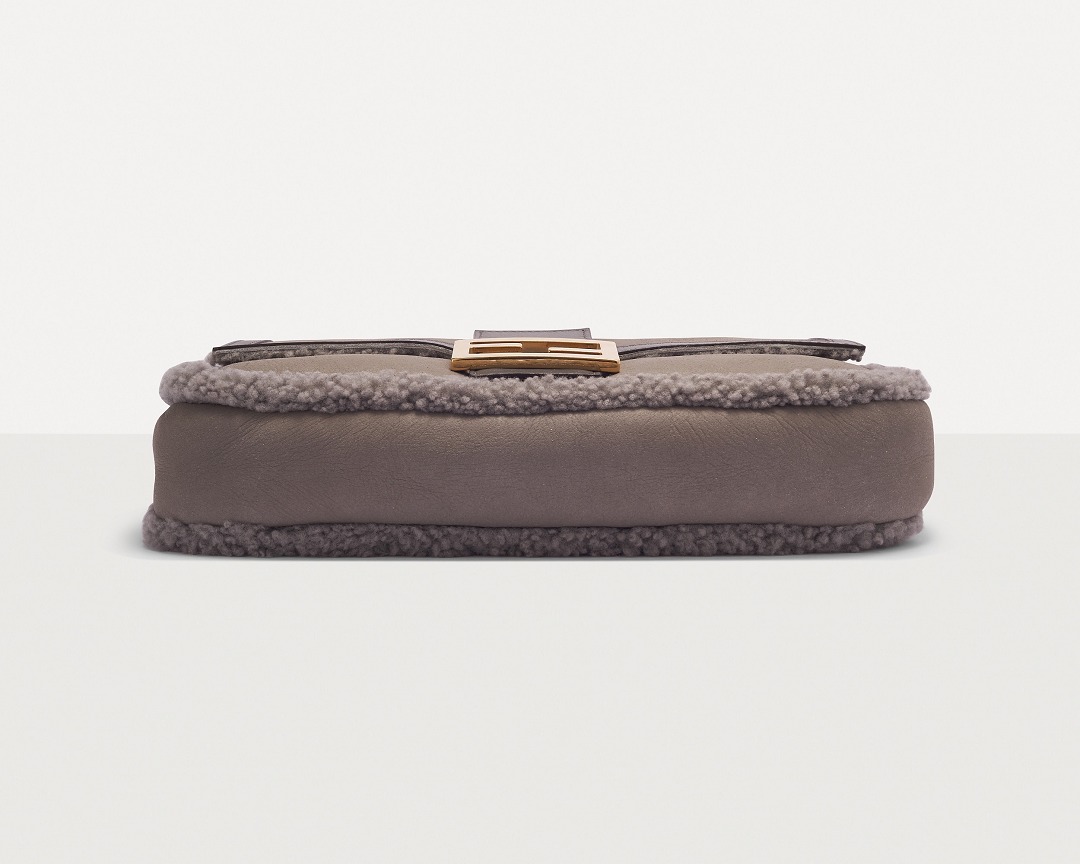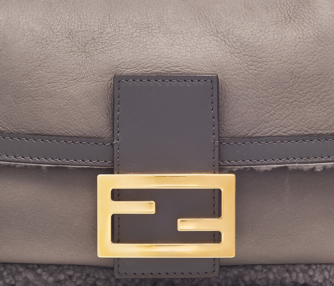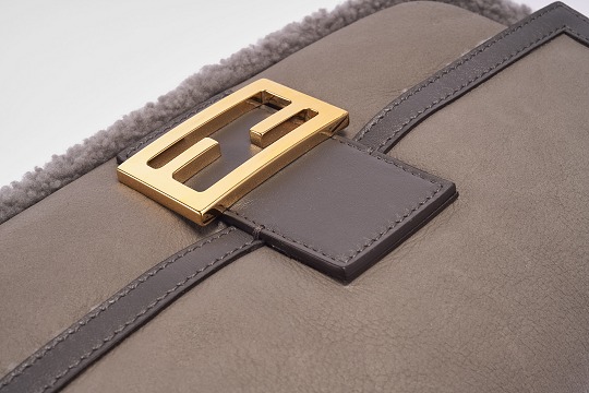 The square and simple FF buckle is the most recognizable design element on this bag, and it is particularly eye-catching against the gray sheepskin. FENDI's classic FF Logo was born in 1967 and was designed by the late creative director Karl Lagerfeld , representing the concept of "Fun Fur" . Because the first letters of the words FENDI, Fun, and Fur are the same, Karl drew the FF sketch in just 5 seconds.