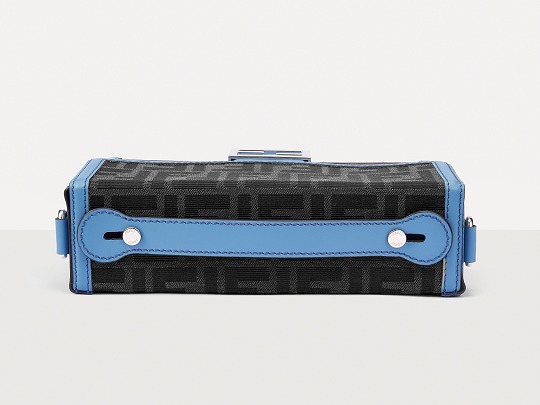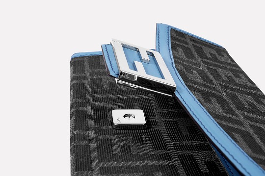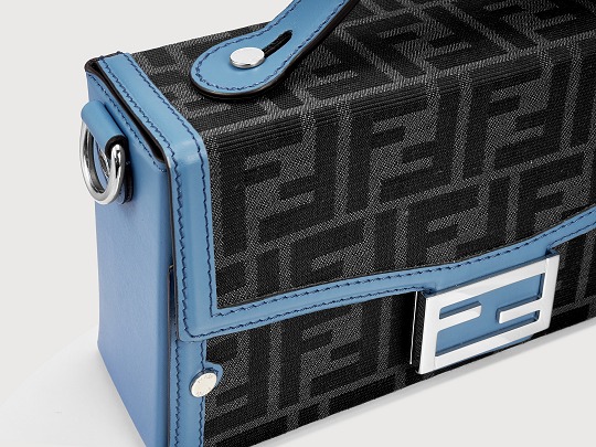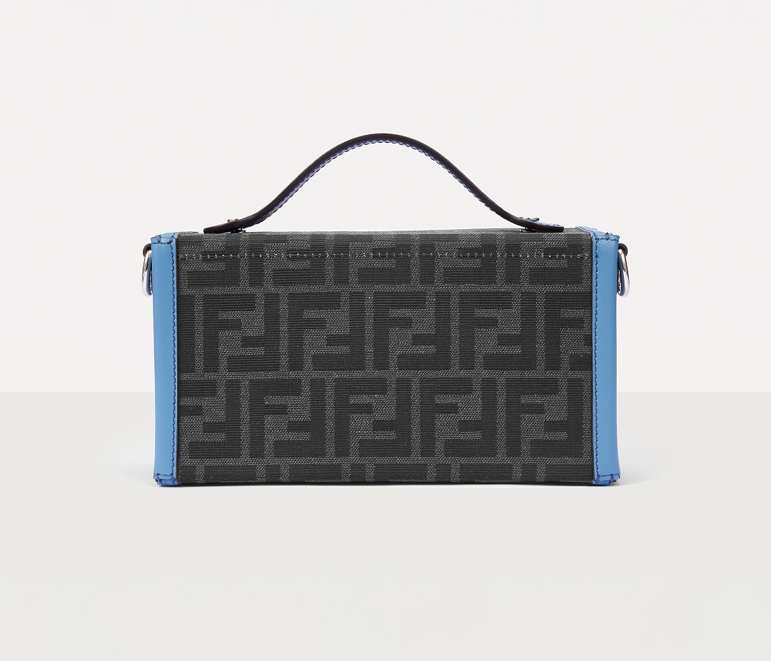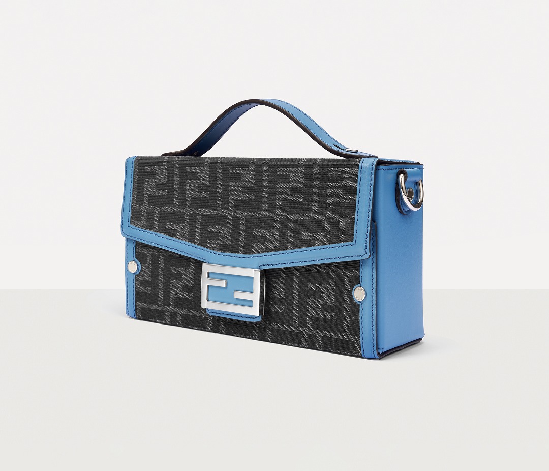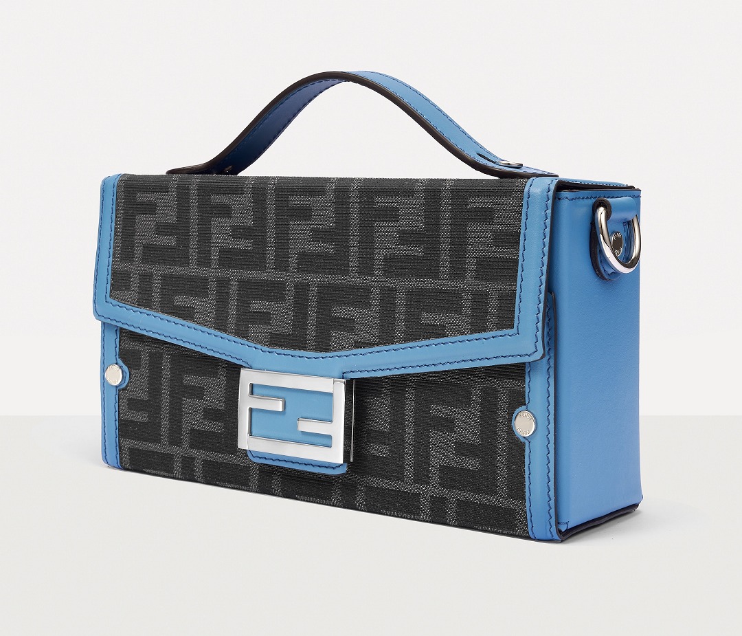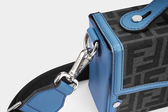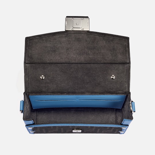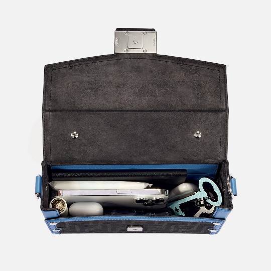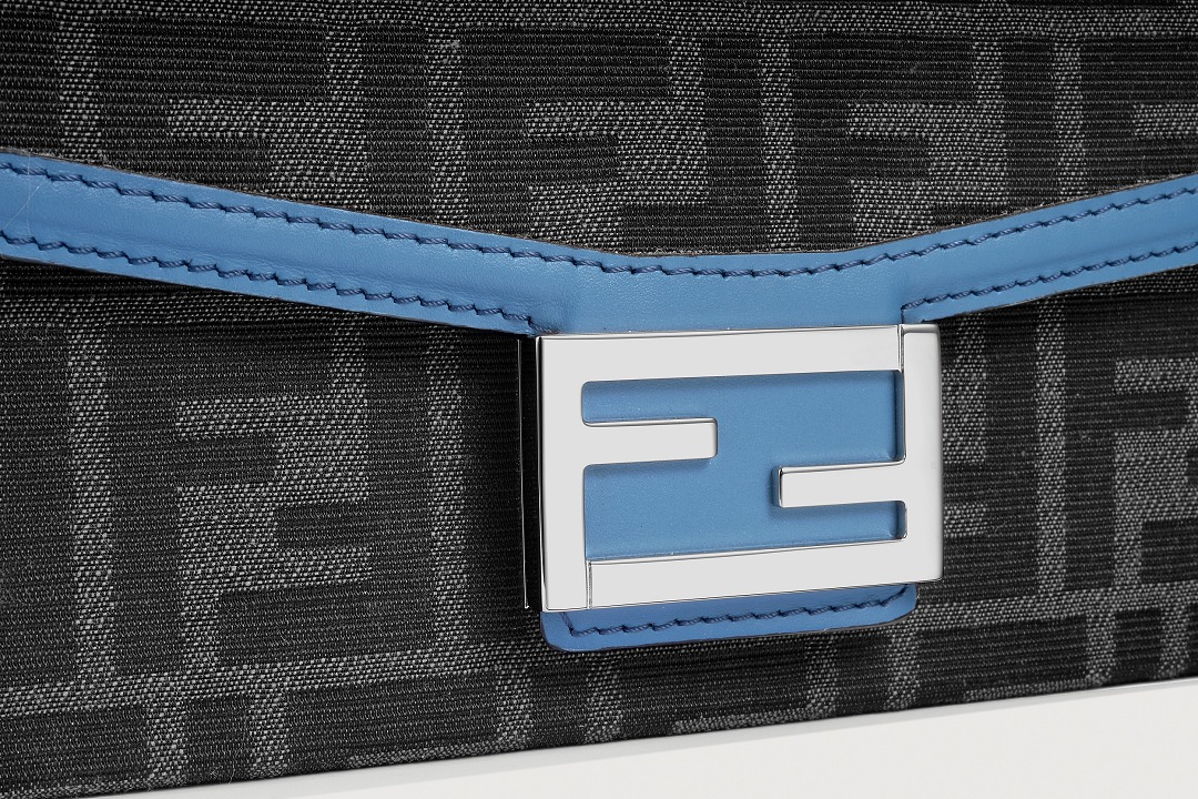The simple and refined FF magnetic clasp is the most eye-catching detail on this bag. It is made of palladium metal with a silver finish , which echoes the blue-gray body of the bag.