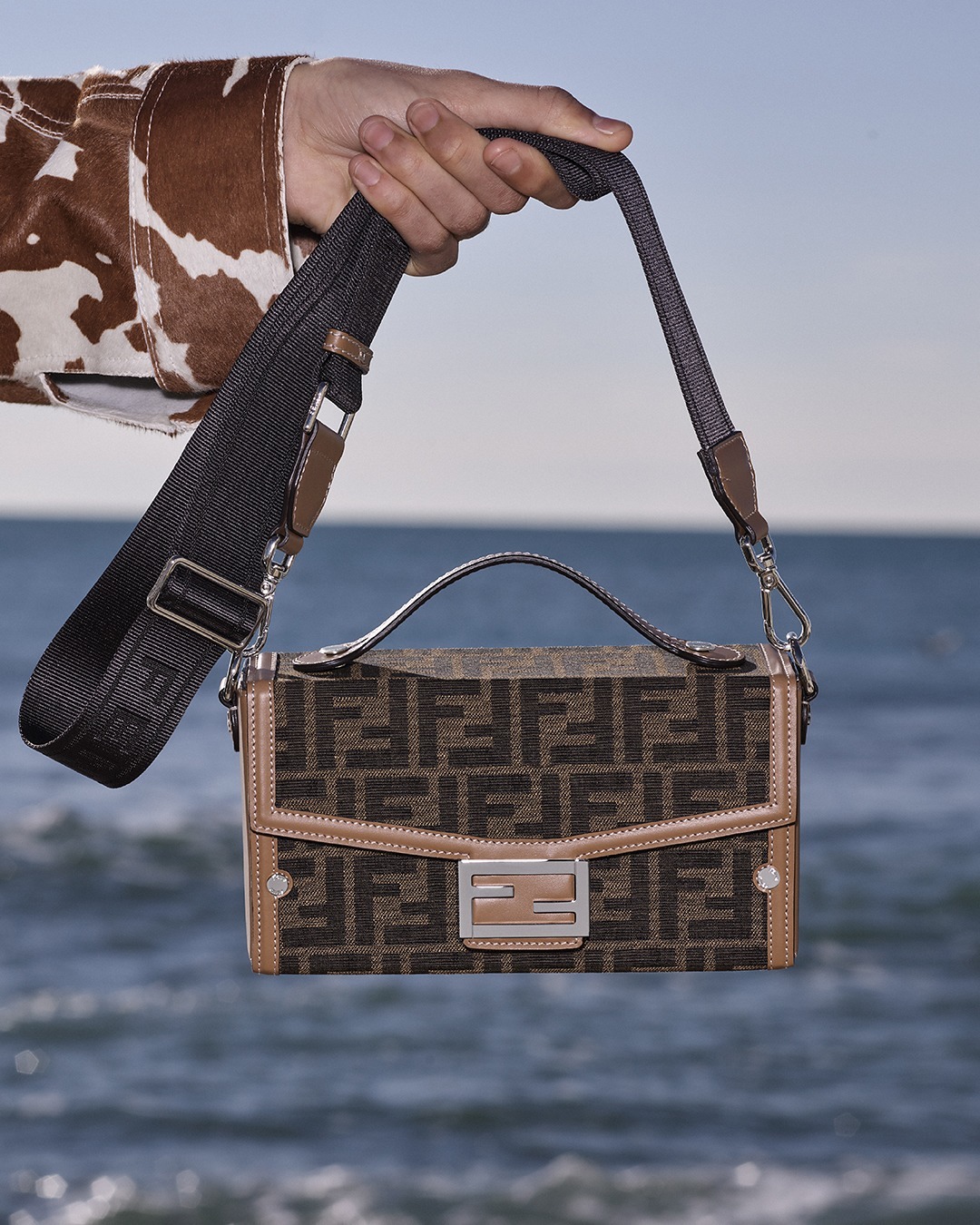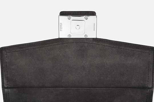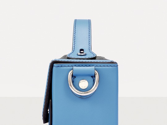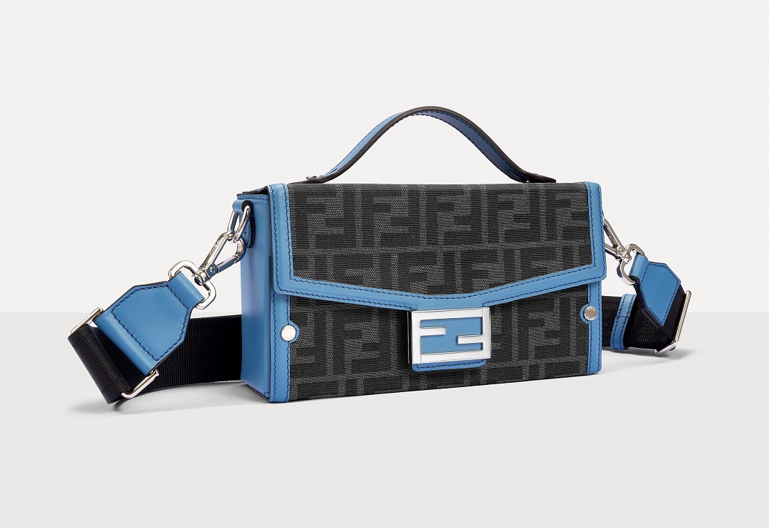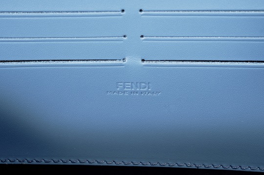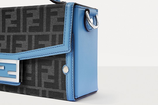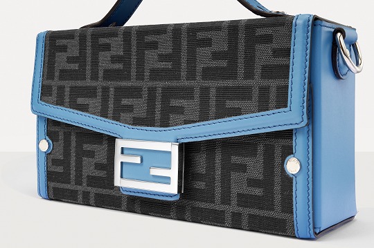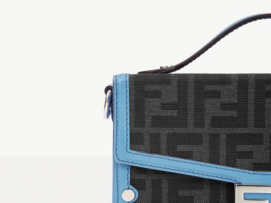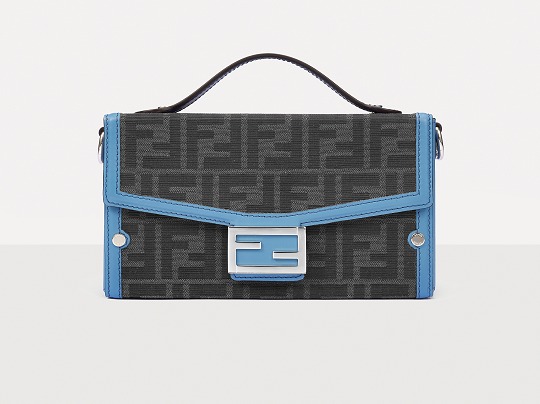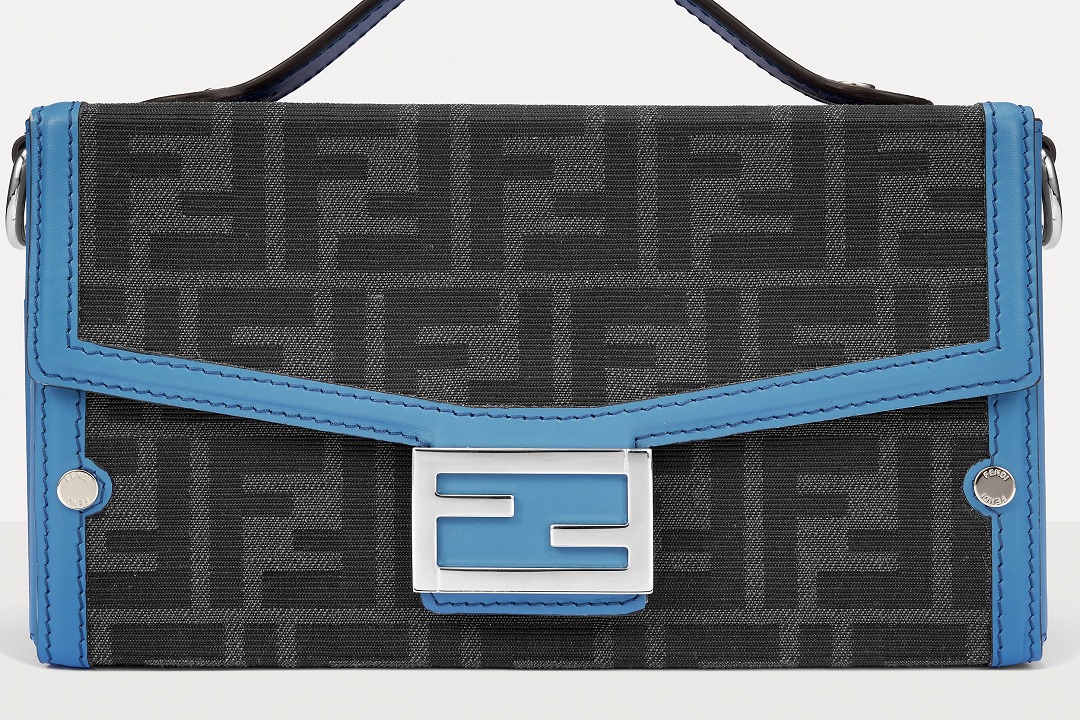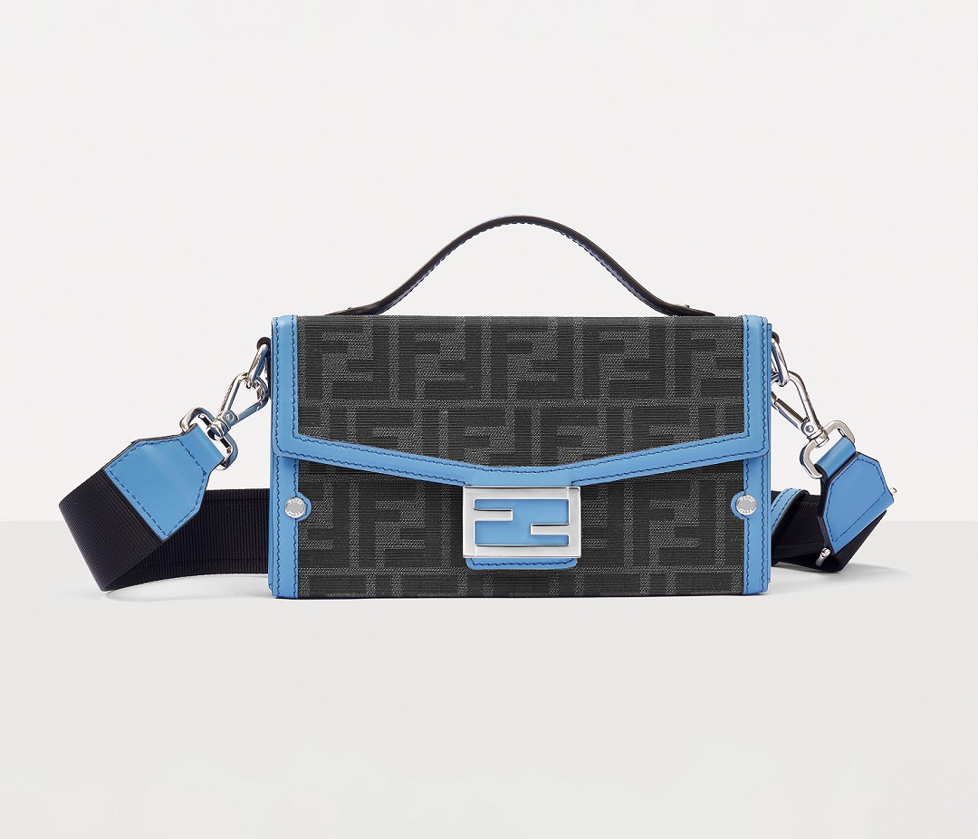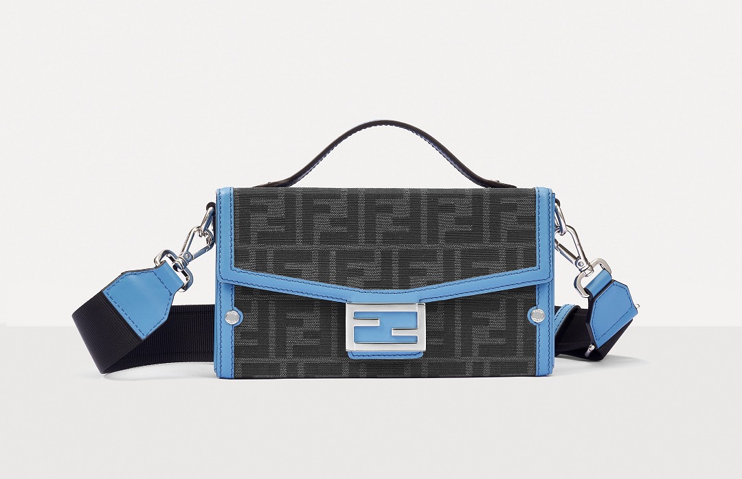 The simple and refined FF magnetic clasp is the most eye-catching detail on this bag. It is made of palladium metal with a silver finish , which echoes the blue-gray body of the bag.