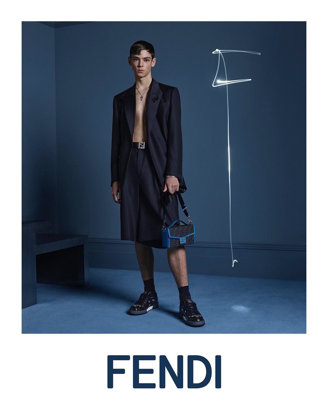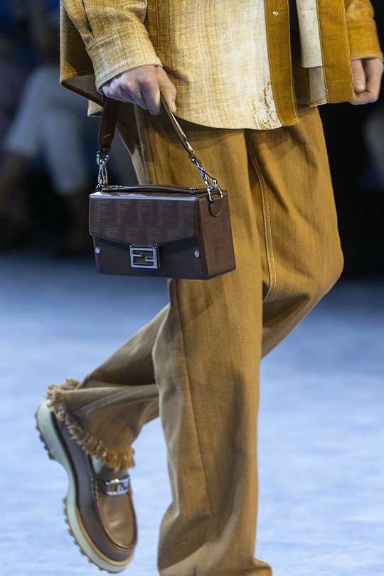 FENDI launched the Baguette Soft Trunk bag for the first time in its 2022 Fall/Winter Men's Collection . It is derived from the brand's classic baguette bag and continues the iconic FF buckle and flap bag shape. The neat box structure injects a tough atmosphere into the bag. The fabric and leather materials are lighter and softer than the hard box bags made of acrylic, and the capacity is also greatly optimized.