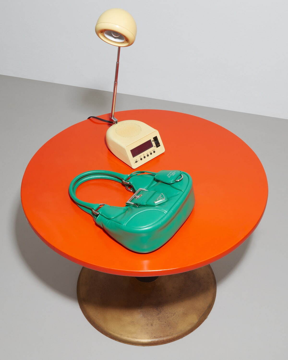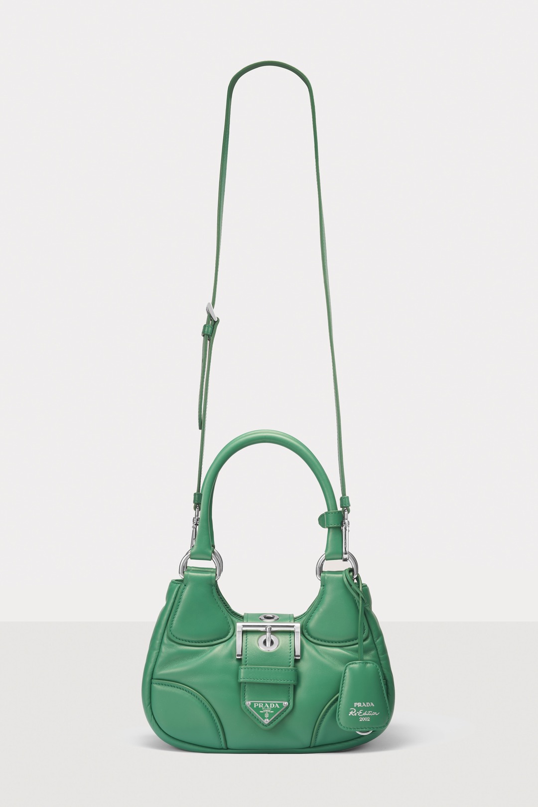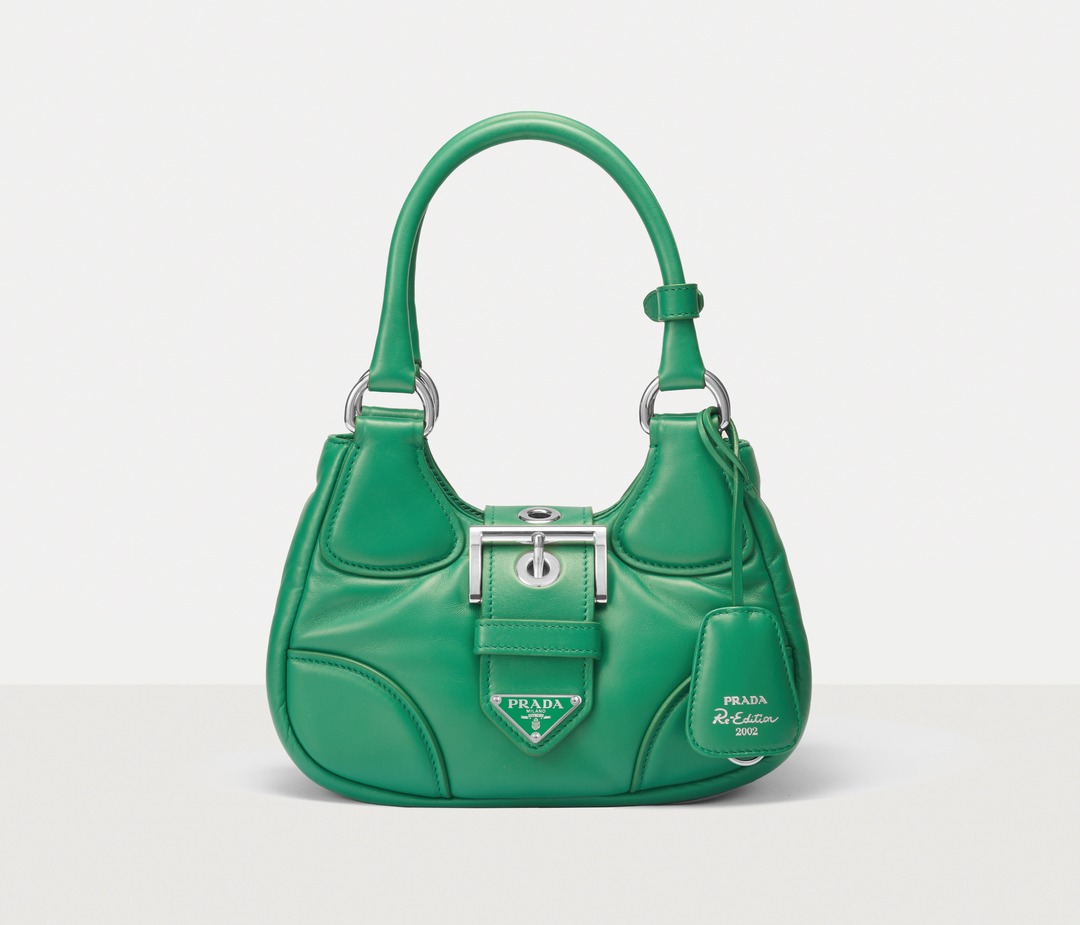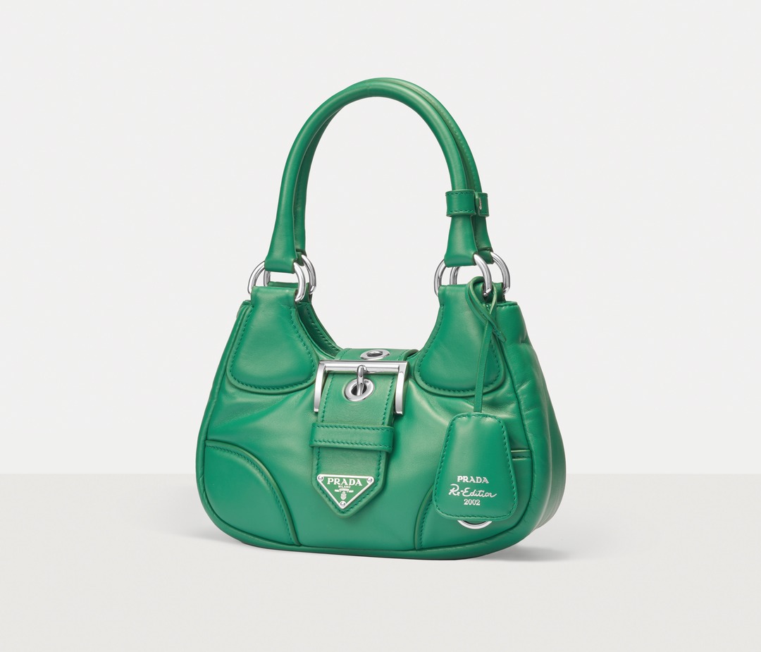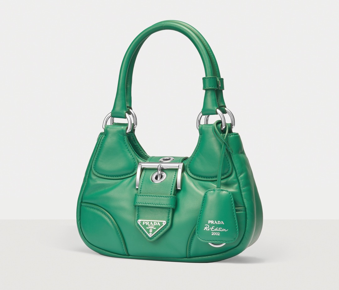 The "Moon" handbag was released in the PRADA 2023 Spring/Summer collection . It was designed by co-creative directors Miuccia Prada and Raf Simons and is a replica of the brand's classic Moon Bag launched in the spring and summer of 2002 .