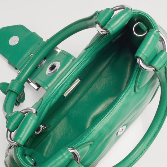 The lining of the bag is still made of mango green lambskin , and the soft leather is especially friendly to the items in the bag. The zippered flat pocket is decorated with a rectangular logo - the silver logo letters are lined with green enamel coating. The size of this handbag is "16x7.5x22.5cm" , and the mobile phone can be easily stored. We also put a coin purse, portable perfume, lipstick, mirror and other small makeup items in the bag. It is no problem to put in the must-haves for the little fairy to go out. Hurry up and ask your girlfriends to go out and shape together~