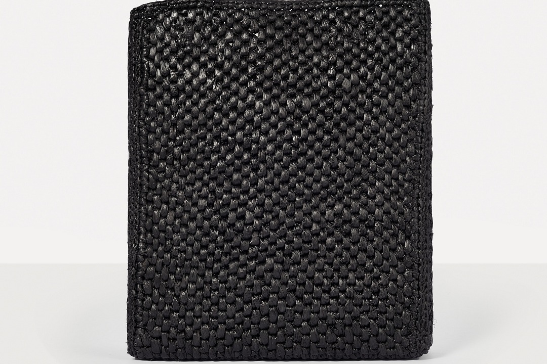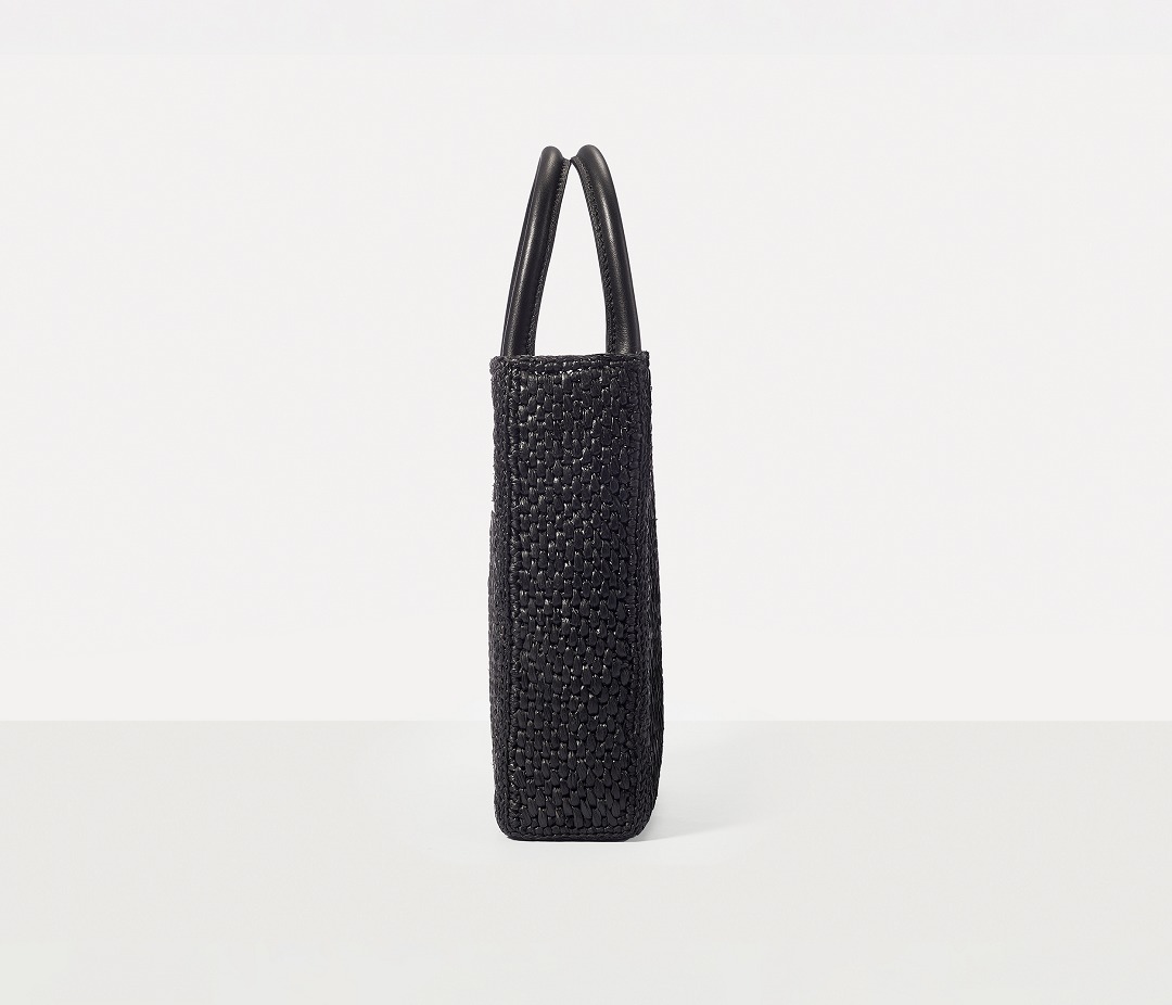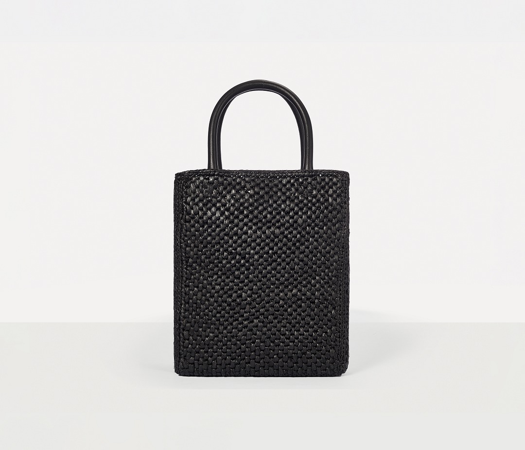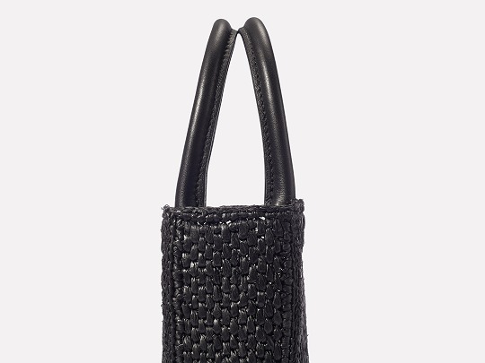 Each bag is hand-woven by artisans, and the dense weaving pattern allows the bag to maintain a flat and stiff silhouette. The arched double handles are made of black calfskin, and the tubular handles are comfortable and resilient.