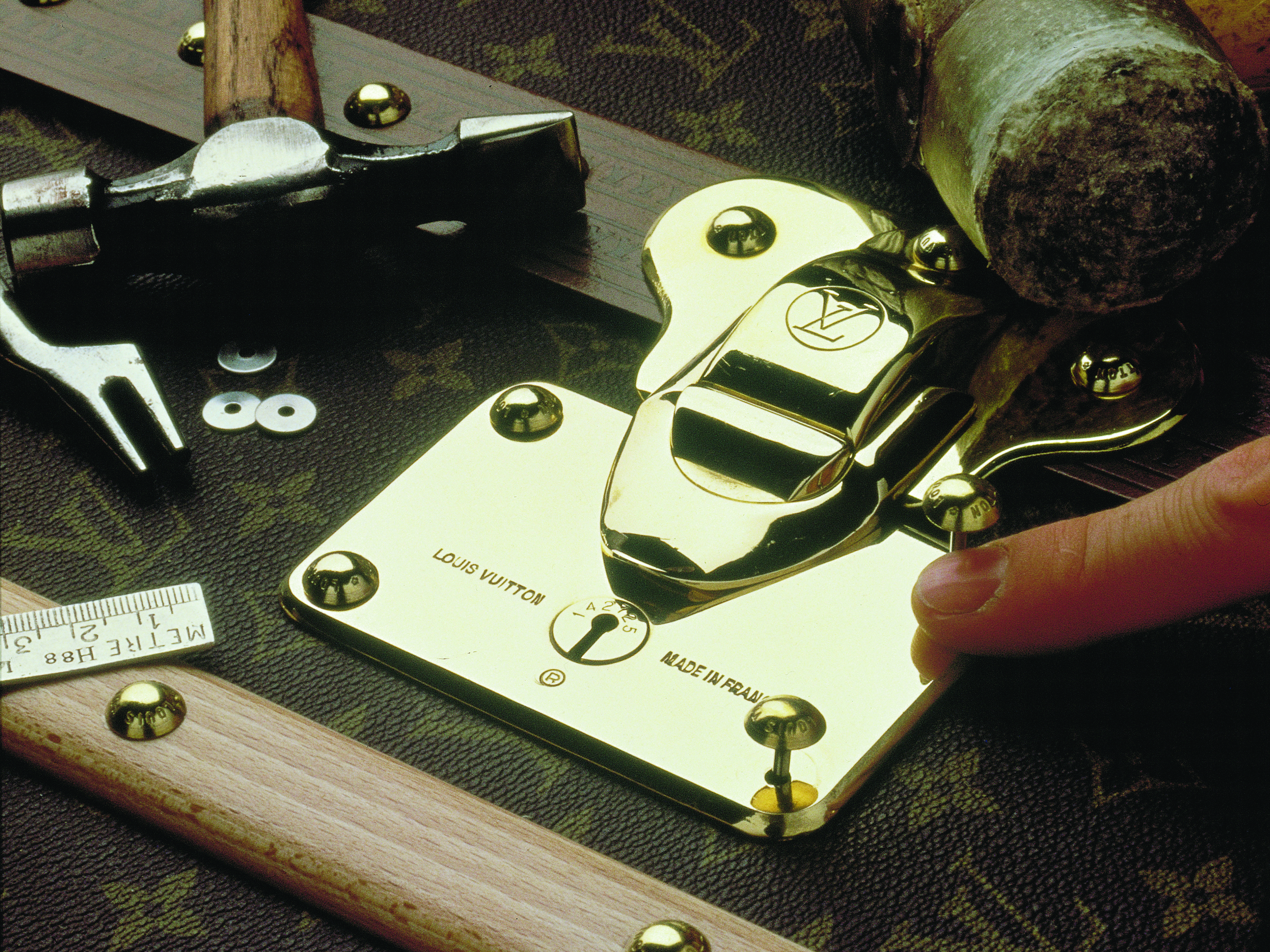 The S-lock clasp evolved from the "Tumbler clasp" on the brand's luggage , continuing the iconic shield-shaped buckle and rivet details. LV invented the single lock system with two spring buckles in 1886, and customized private locks with special numbers for customers, so that all luggage of each guest can be opened and closed with the same key.Just push the round button on the lock gently towards the center, and the shield-shaped lock will automatically pop open with a crisp "click" sound.