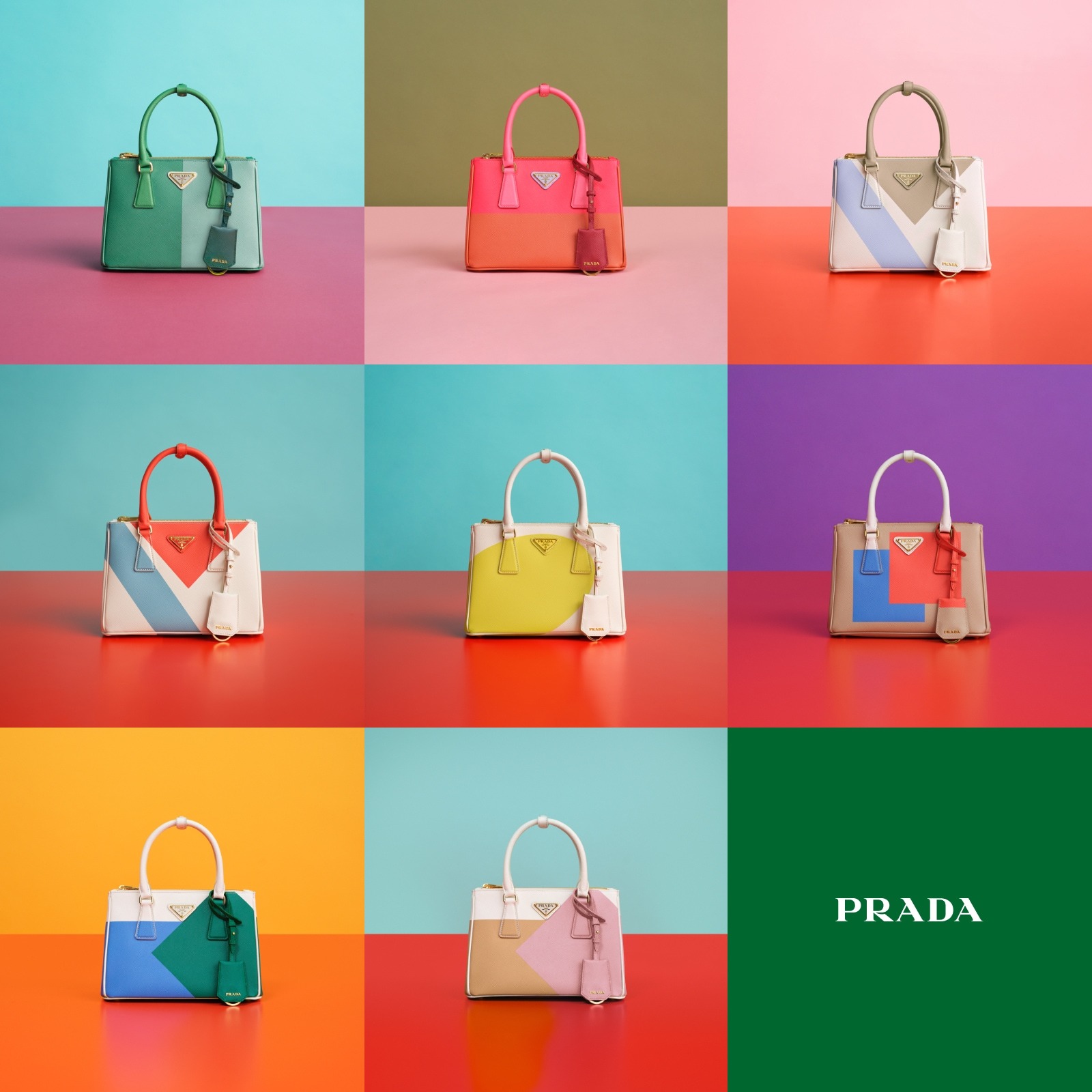 Prada Galleria handbags are launched in limited edition, with the classic doctor bag silhouette as the canvas, rendering pop-style geometric patterns on the iconic Saffiano cross-grain leather , reinterpreting the timeless design from a modern perspective. Each handbag is handmade and decorated with the Prada triangle logo, inheriting the collection's craftsmanship.