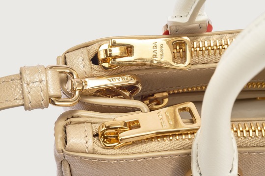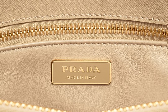 The raw edges of the bag are polished and hand-sealed to make them harmonious with the leather surface. Every hardware detail is exquisitely crafted, the gold-plated zipper is finely engraved with the Prada logo, and the 4 metal feet protect the bottom of the bag from wear and tear.