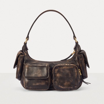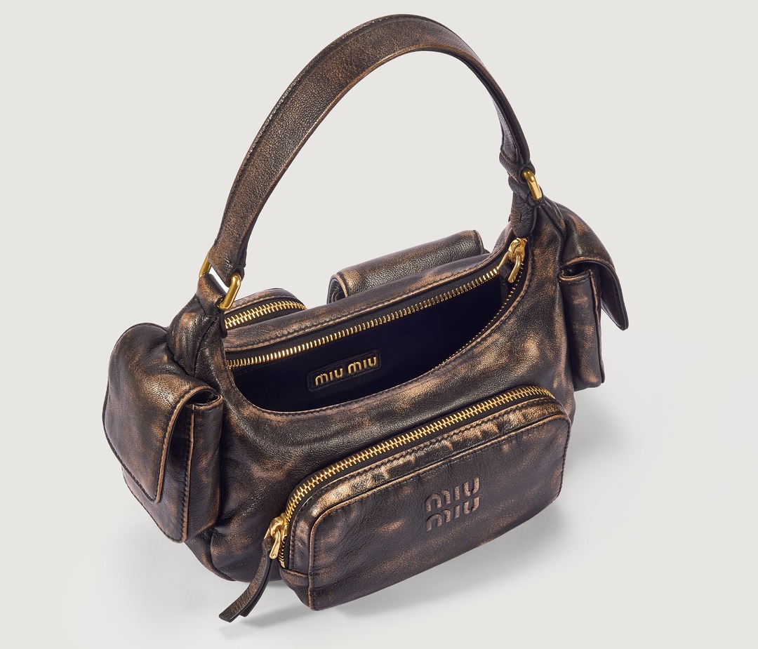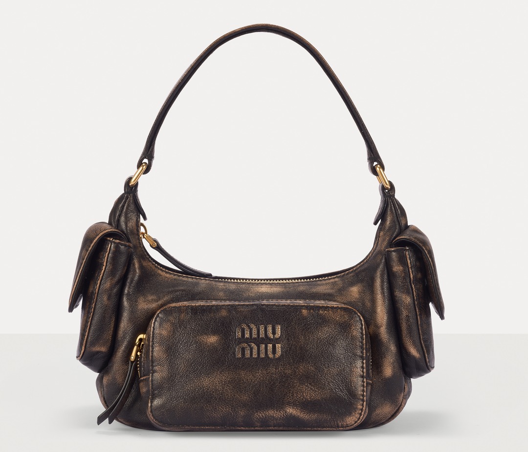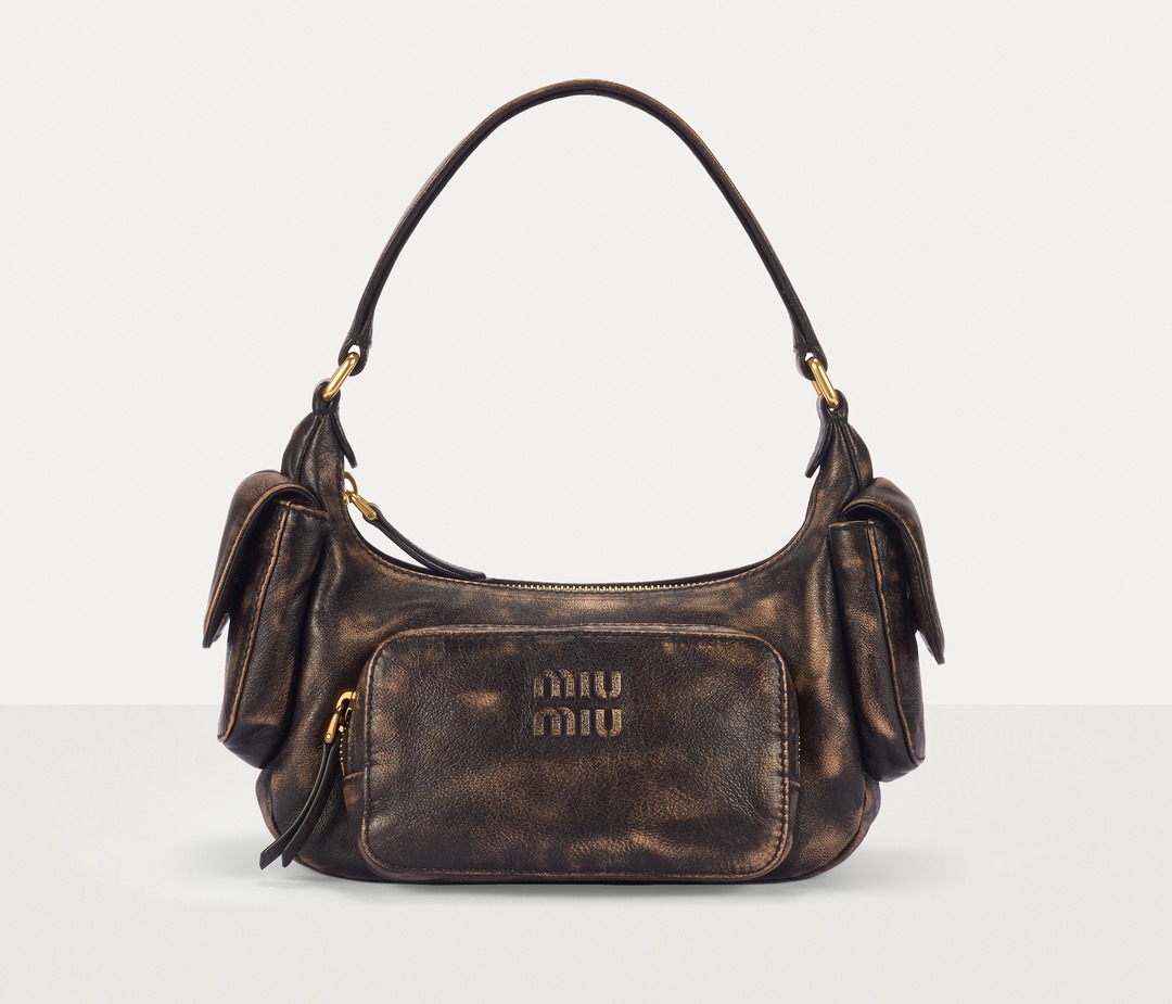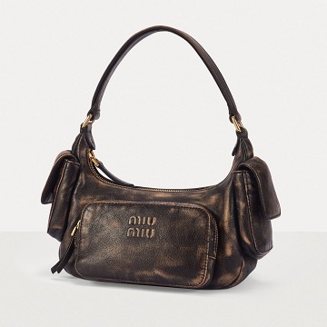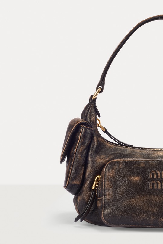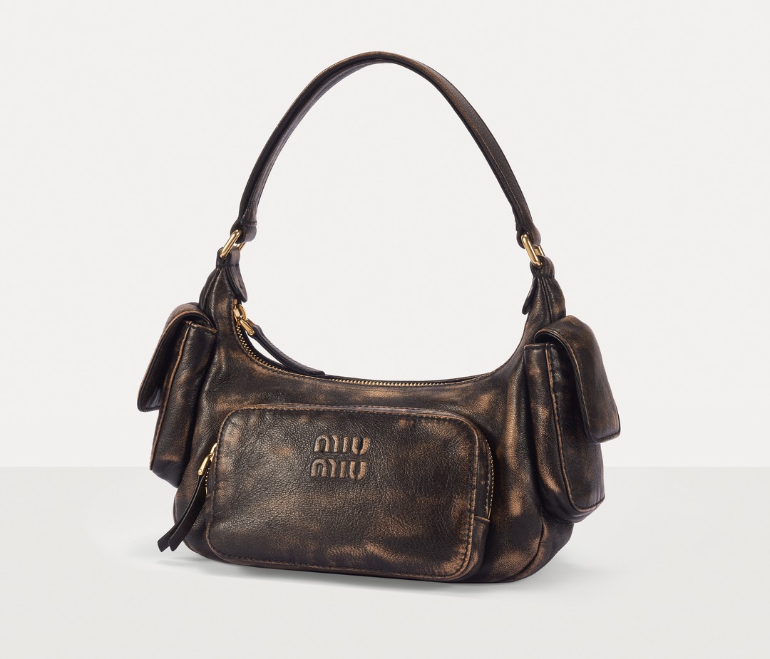 This Pocket shoulder bag adopts the popular Hobo bag shape, with a crescent-shaped opening and a smooth curved cut that fits the shoulder line comfortably. The Multipocket design injects a handsome workwear style into the bag and makes storage orderly. The MIU MIU logo is embossed on the front of the bag, and the flap pockets on both sides are opened and closed with magnetic buckles, making it easy to take out small items such as AirPods and tissues.
