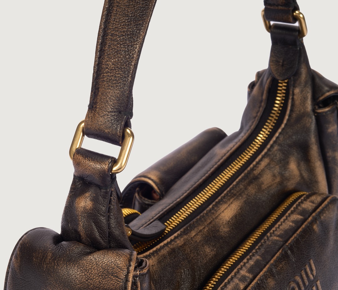 This bag gives people a full vintage feeling, not only because of its workwear style, but also because of its sand and brown leather , which reveals the intriguing marks of time.
