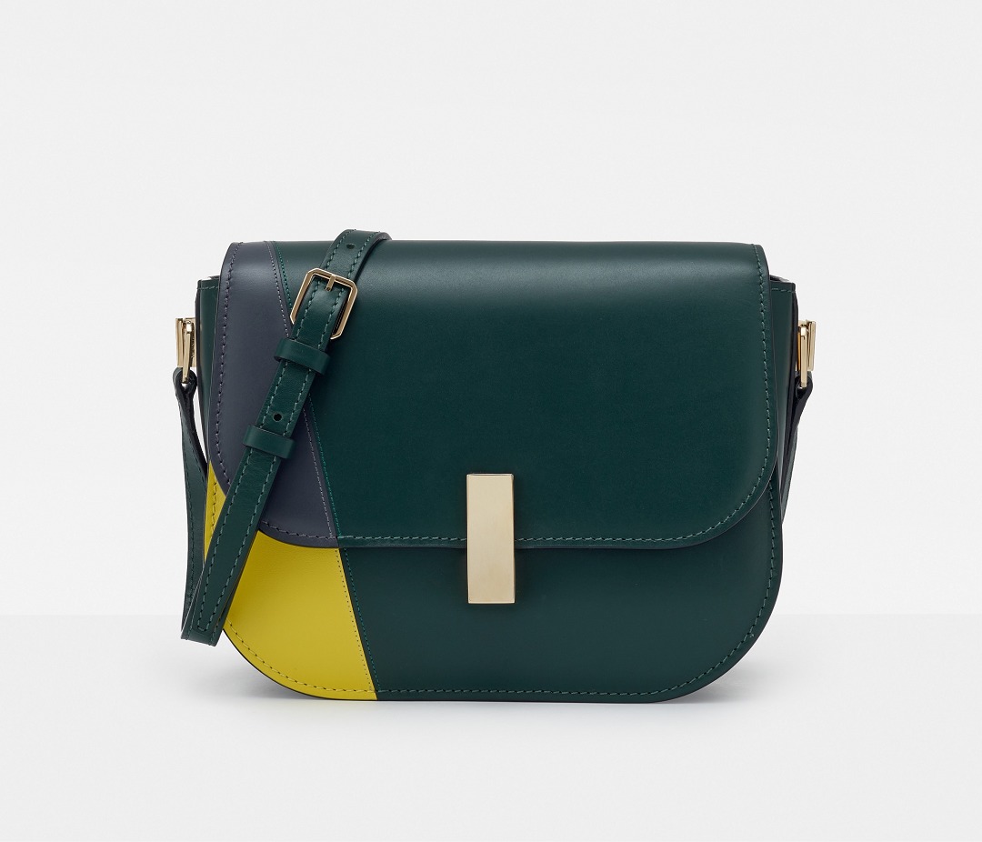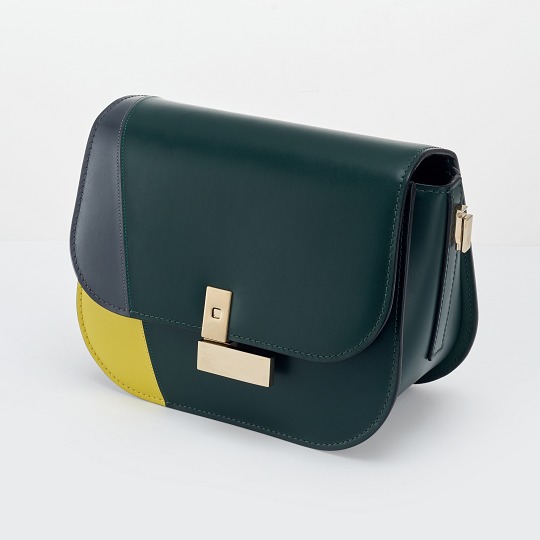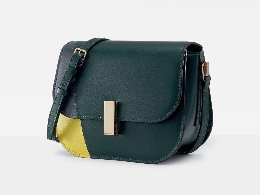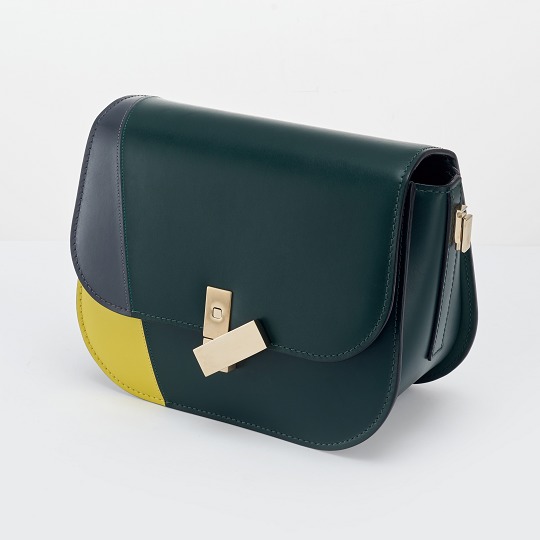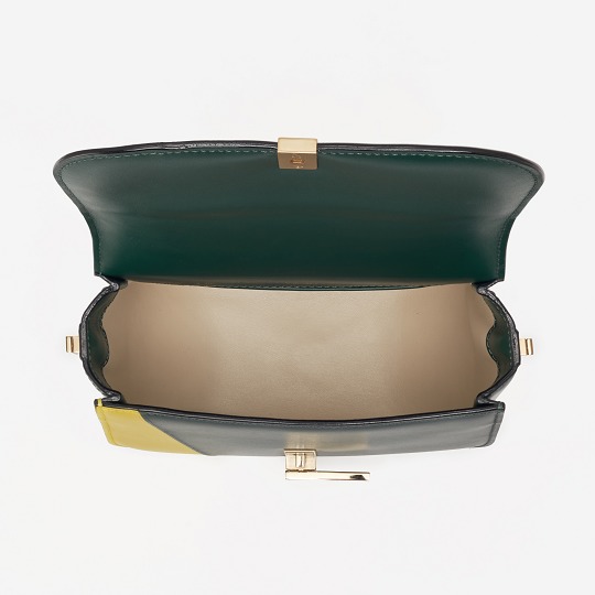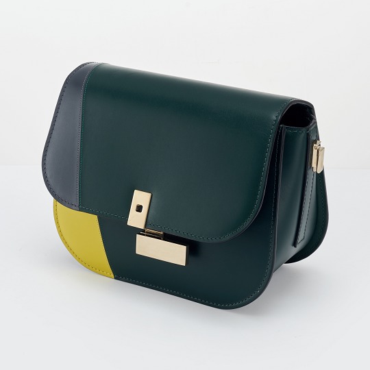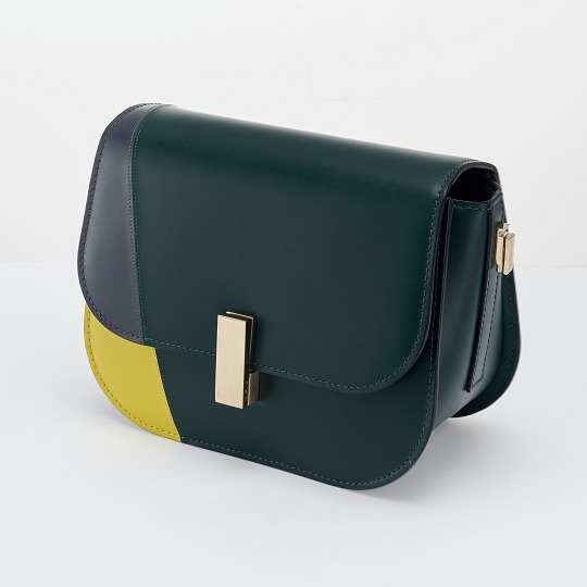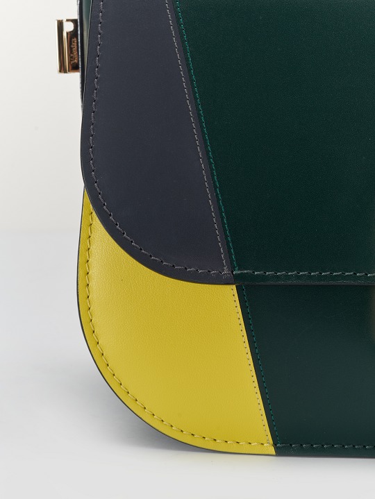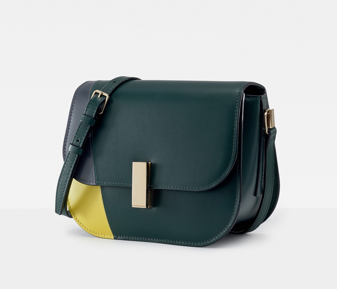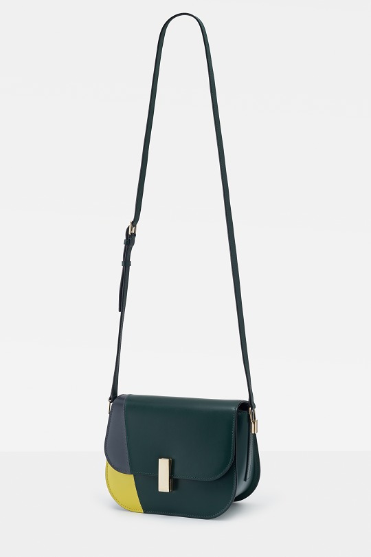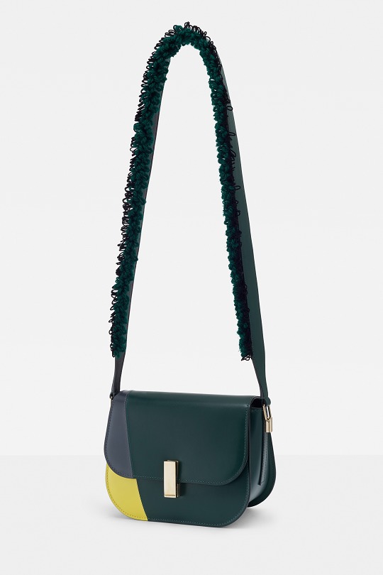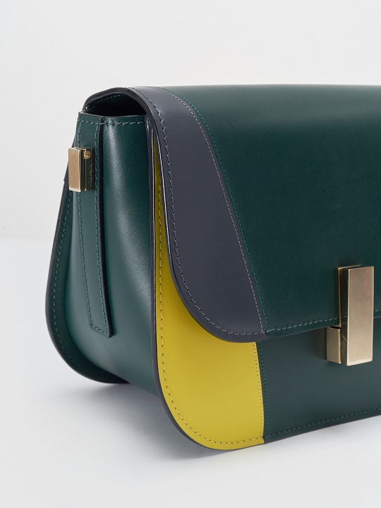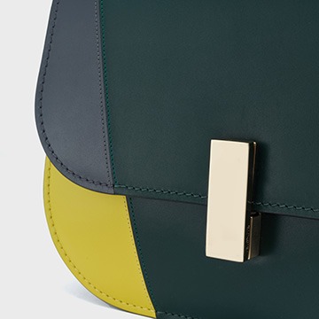 This color-blocked Iside crossbody bag is from the 2018 Fall/Winter "Enchanted Forest" series. The designer extracted pigments from natural things such as forests, skies, sunsets, pebbles, etc. and used them as the color of the bag, which is cool and a little mysterious.