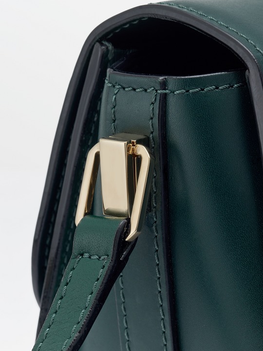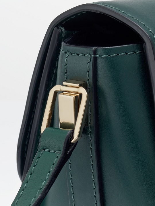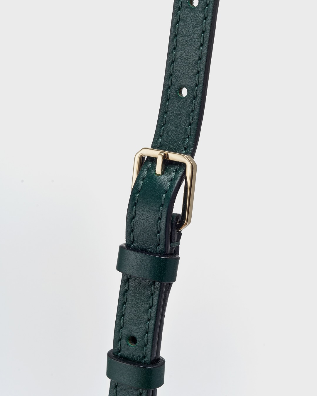 The shoulder strap can be adjusted in length through the buttonholes, with the shortest being 54cm and the longest being 61cm, to meet different needs of single shoulder or crossbody. Valextra has also thoughtfully designed a series of interchangeable shoulder straps. This wide shoulder strap decorated with wool tassels matches this dark green Iside handbag very well.