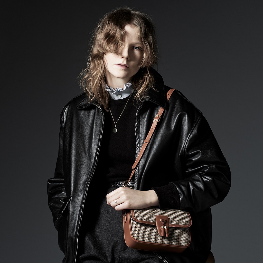The shoulder strap of the bag is also made of calfskin, extending naturally from both sides of the streamlined bag body. The length can be adjusted through the telescopic buckle to meet the different needs of single shoulder or crossbody. The hardware of the whole bag has been simplified, with two square buckles at the shoulder strap connection and a saddle-shaped buckle for adjusting the length, which perfectly matches the retro bag body.