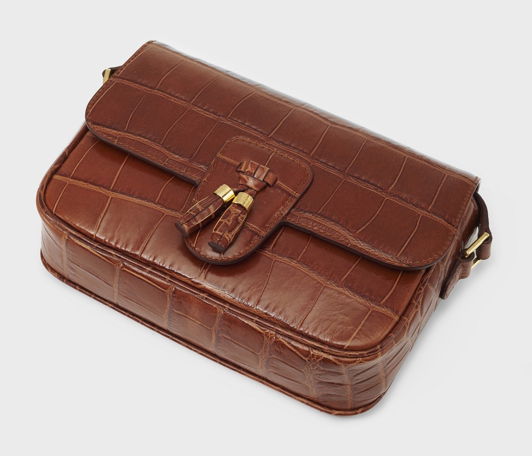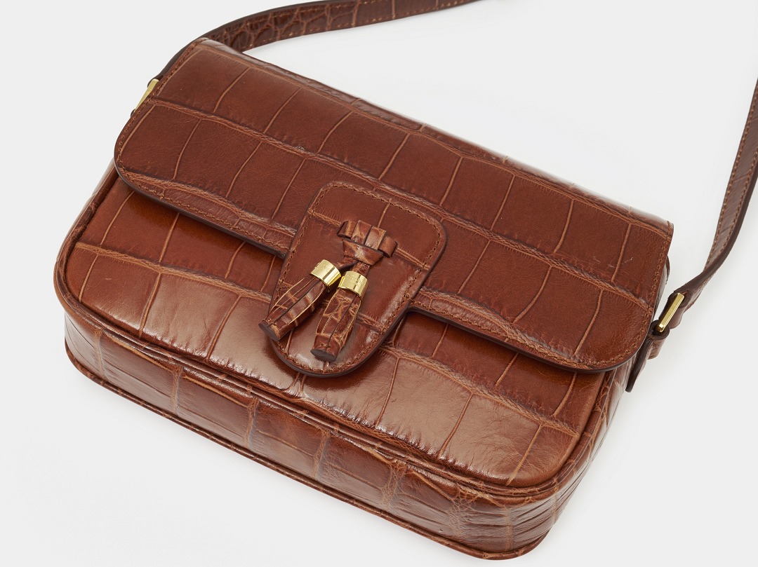 · Crocodile-embossed calfskin leather·