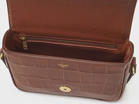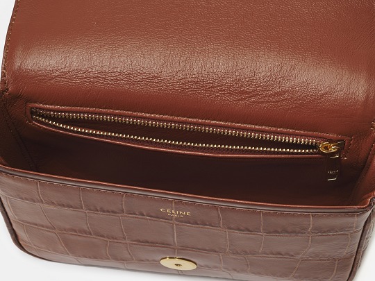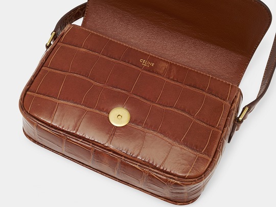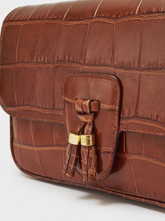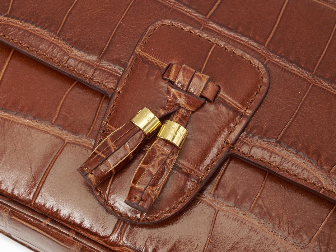 The tassels of this bag are cut and rolled from crocodile-embossed calfskin, fixed at the bottom with stitching and black oil edges, and the golden ring engraved with the CELINE PARIS logo is the finishing touch of the entire bag.