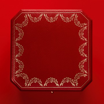 The Cartier red jewelry box has a history of more than 100 years. The box adopts a ruby octagonal appearance, with a golden wreath trim on the edge and black velvet or white silk to set off the jewelry.