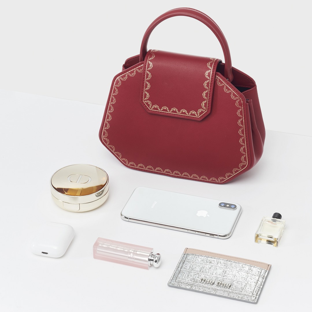 Although it is pocket-sized, this bag is much more practical than expected. We put a box of air cushion powder, an iPhone X, a card holder, perfume, lip gloss and Airpods in the bag. It can hold all the small things that girls usually carry when going out. The bag is quite stiff, so it will not affect the shape even if it is full.