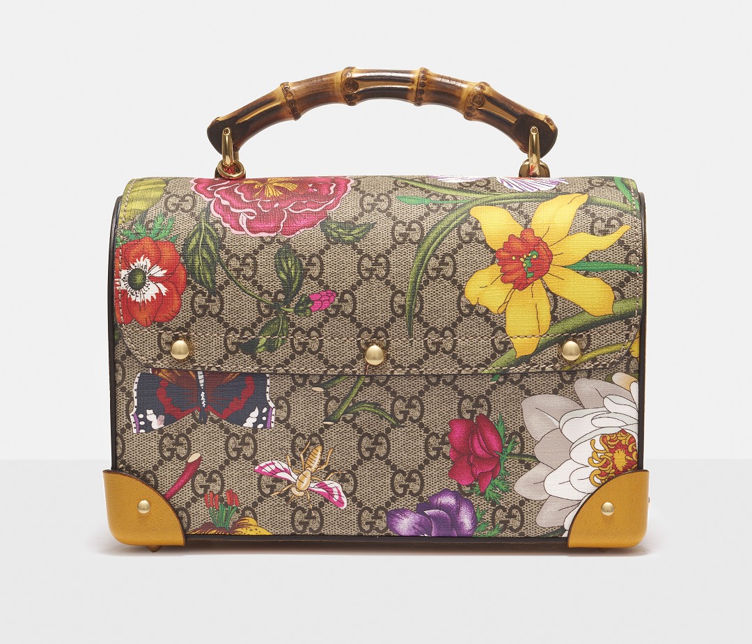 Vittorio Accornero used 37 colors to depict 43 plants and insects , including poppies, roses, violets, daisies, butterflies, etc., and named it "Flora" . The print on this bag is presented on the GG canvas using holographic printing technology , and the color tone is very delicate and exquisite.