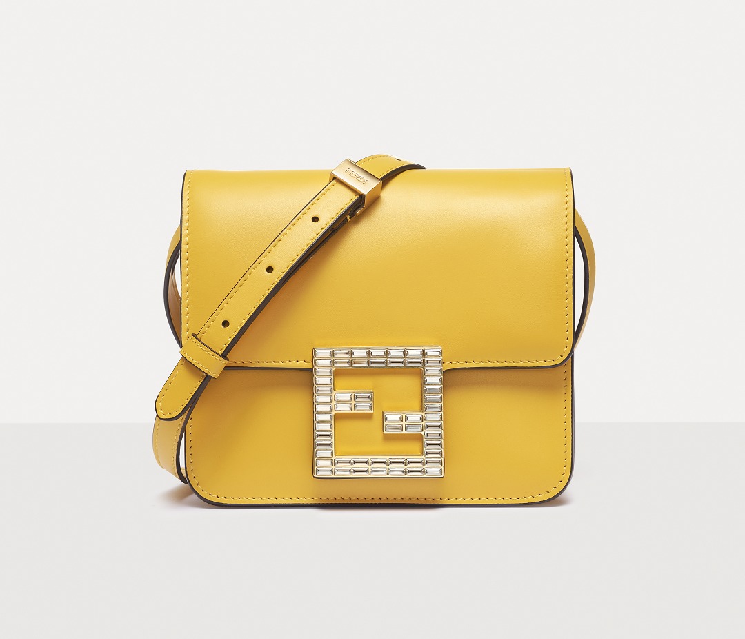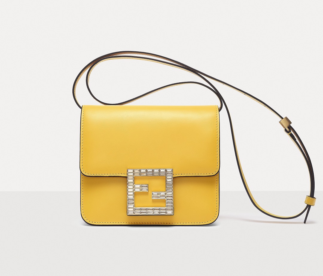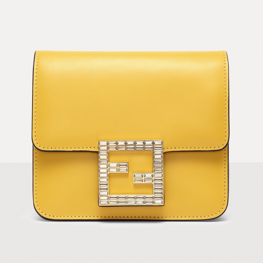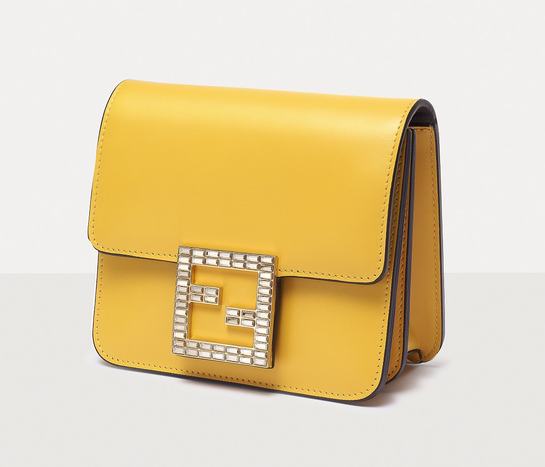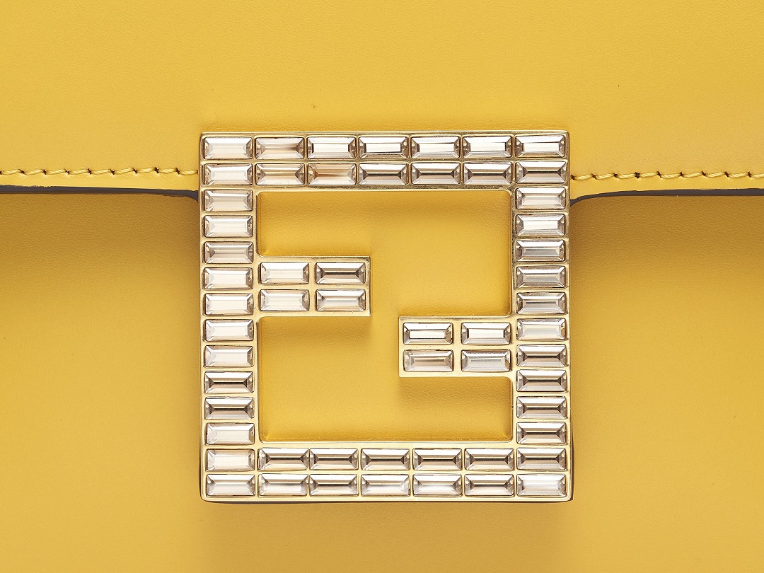 The FAB handbag uses the square FF Logo to make a metal buckle, on which 56 rectangular-cut Swarovski crystals are inlaid . It looks particularly dazzling on the yellow bag and has become the soul element of this bag.