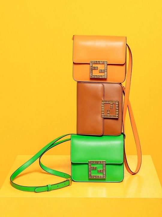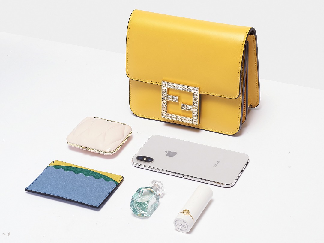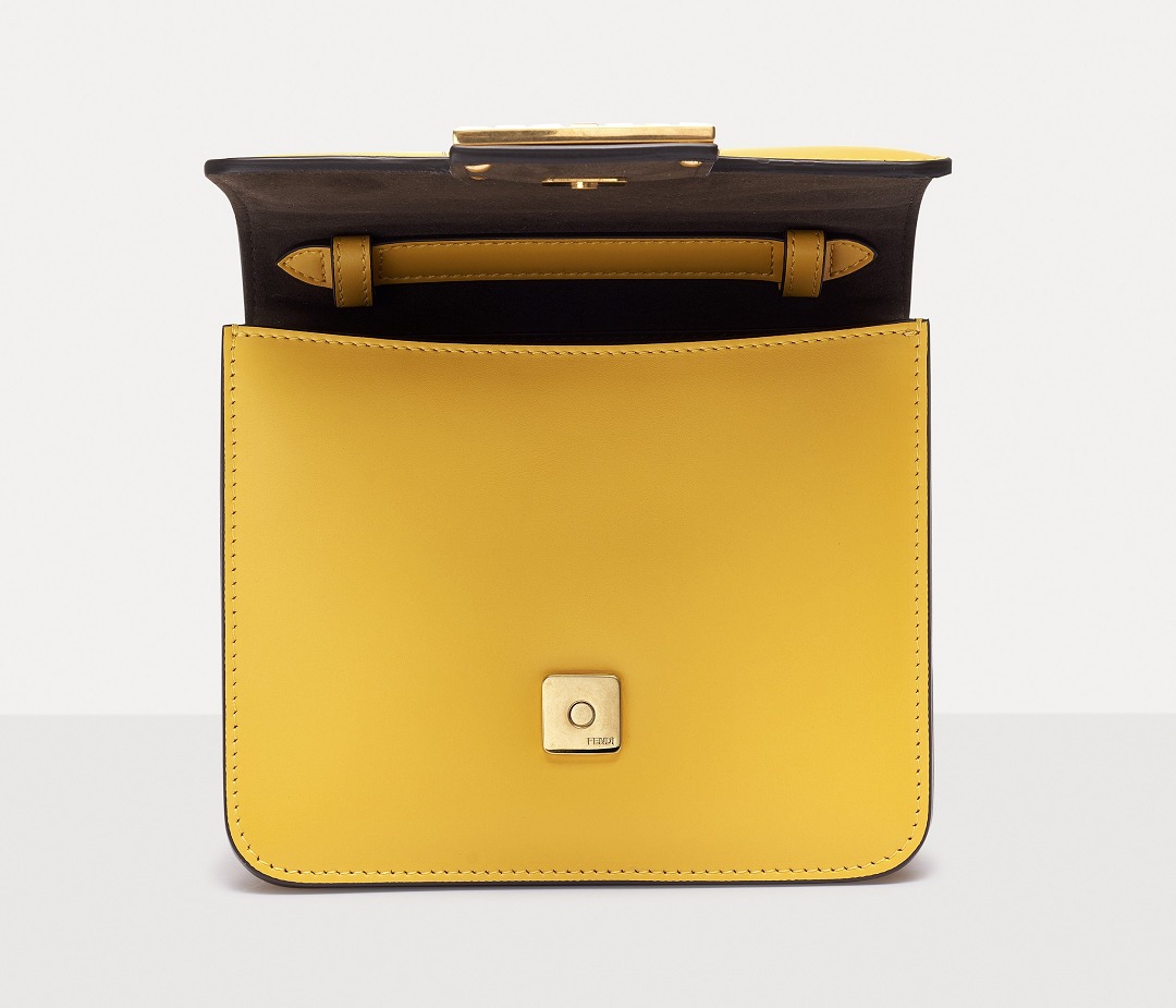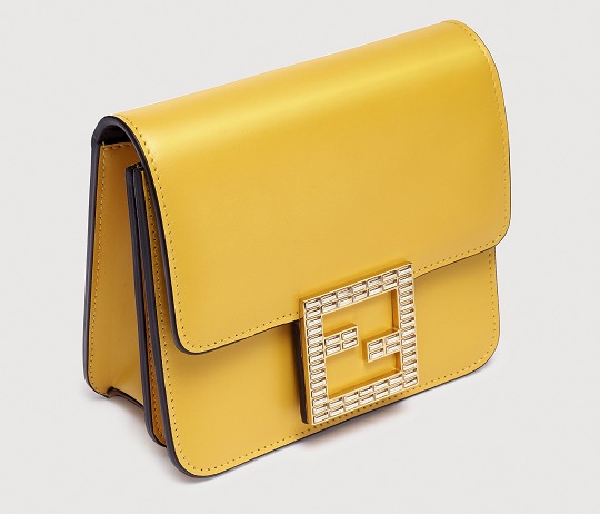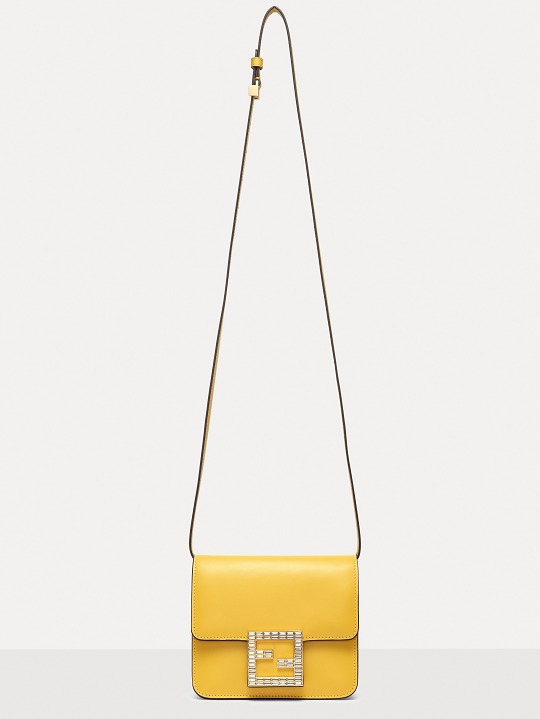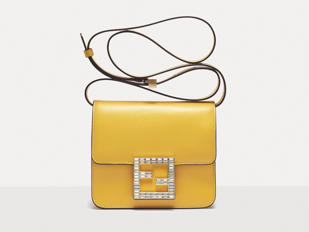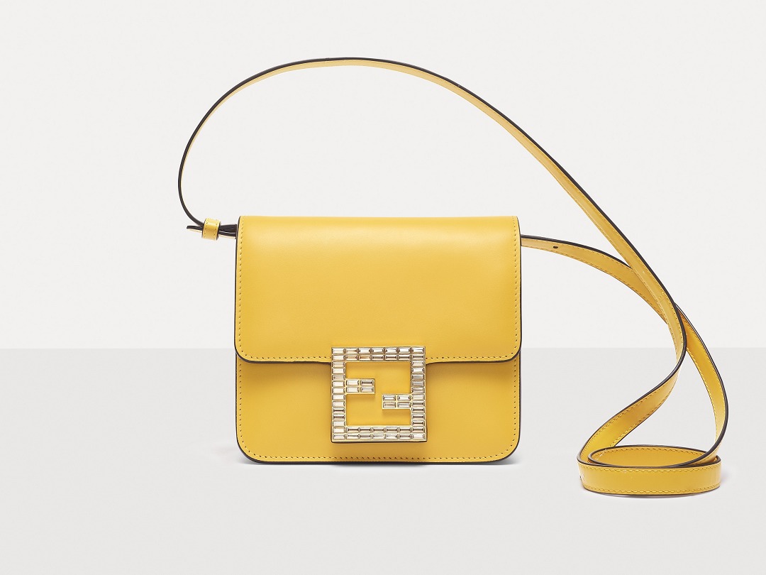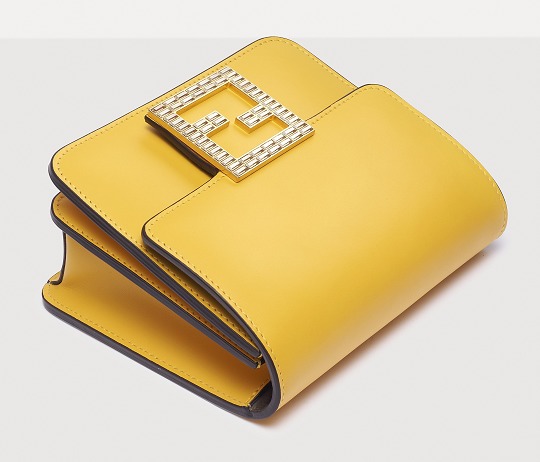 The FAB handbag uses the square FF Logo to make a metal buckle, on which 56 rectangular-cut Swarovski crystals are inlaid . It looks particularly dazzling on the yellow bag and has become the soul element of this bag.