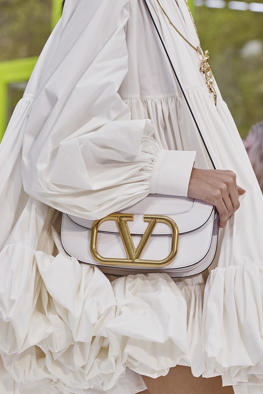 "VLOGO" was born in the early days of Valentino in the 1960s . It has made a strong comeback since the spring and summer of 2019 , appearing on VRING , VSLING and SuperVee handbags with eye-catching metal buckles .