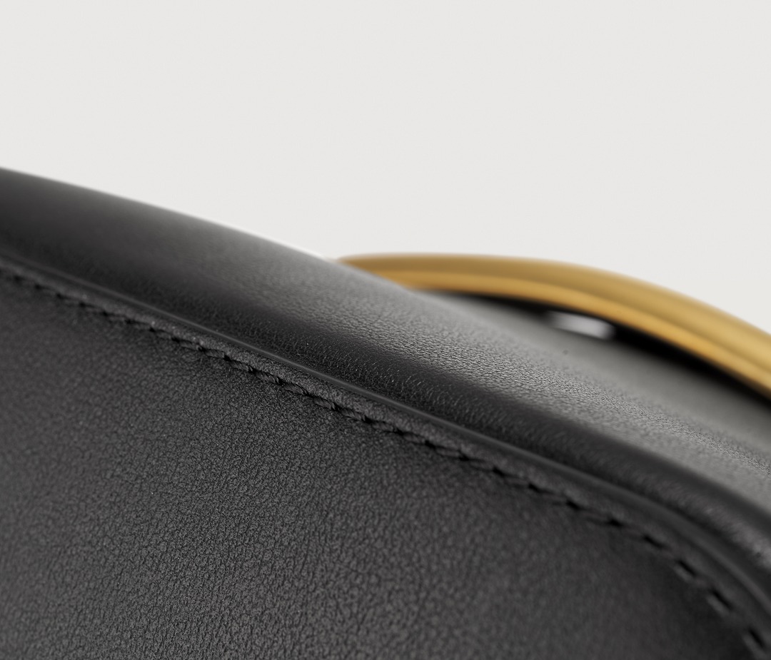 It is worth noting that the handle is a perforated leather belt that can be connected to the oval buckle on the bag body; there are hooks at both ends of the shoulder strap for disassembly.