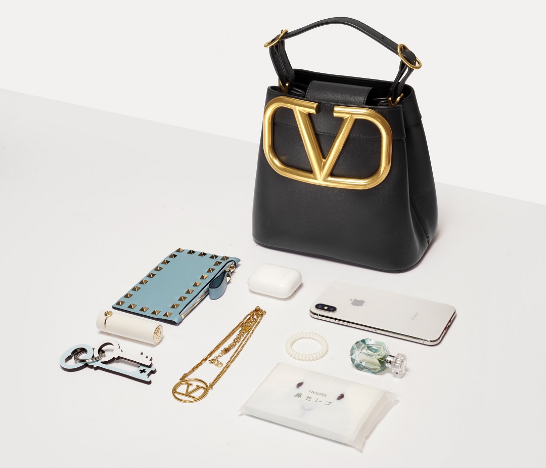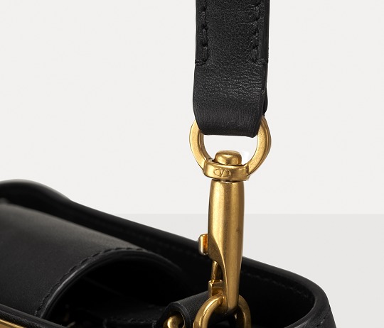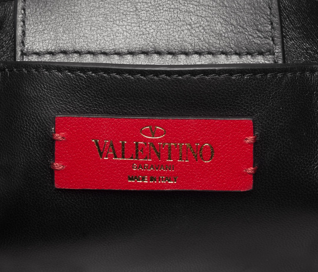 The first thing that comes into view when you open the bag is a Valentino Red leather label with the brand logo printed in gold, which contrasts with the black lambskin lining. The handbag has a crisp shape and a spacious interior with 3 card slots . We put a wallet, mobile phone, napkins, portable perfume, wireless headphones, lipstick and accessories in the bag, and it is still not full. It is more than enough to add makeup products such as powder.