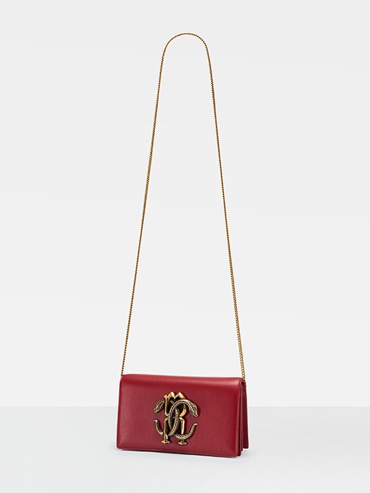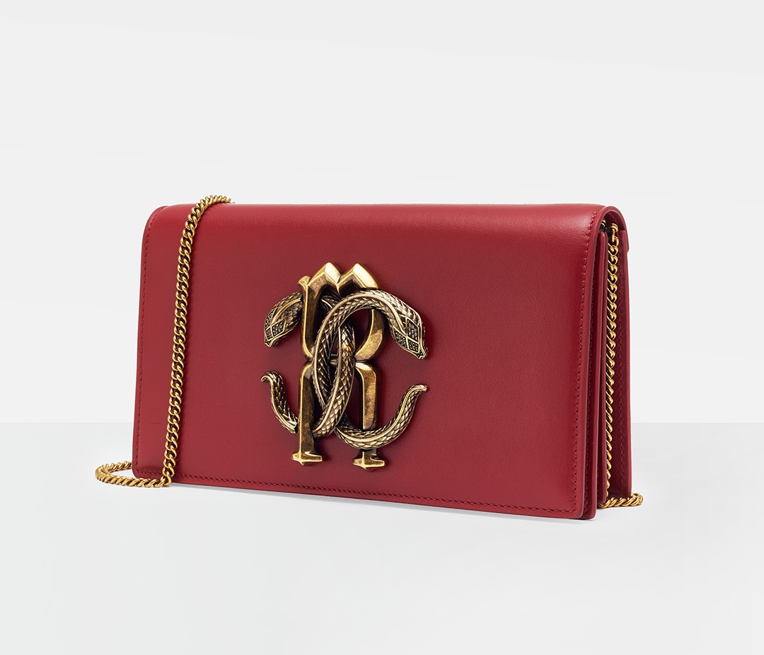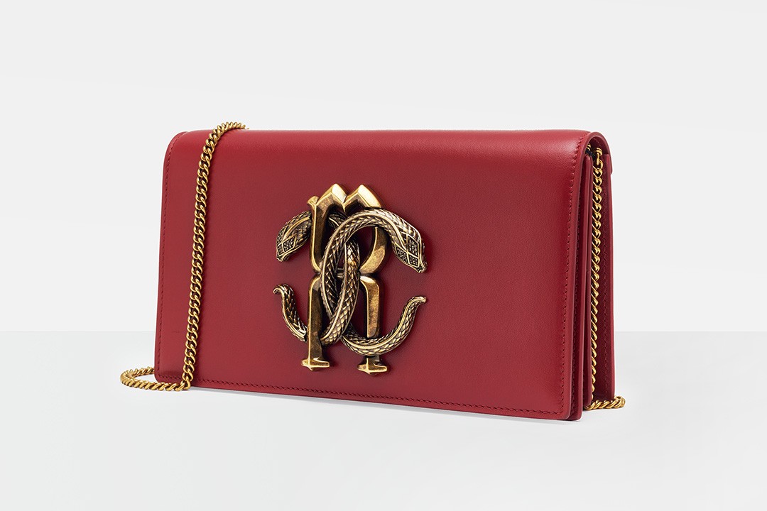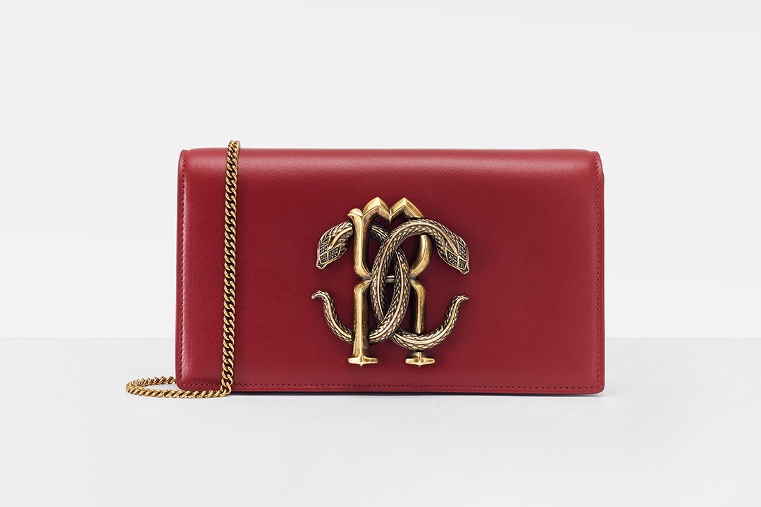 Roberto Cavalli mirrored snake logo chain bag