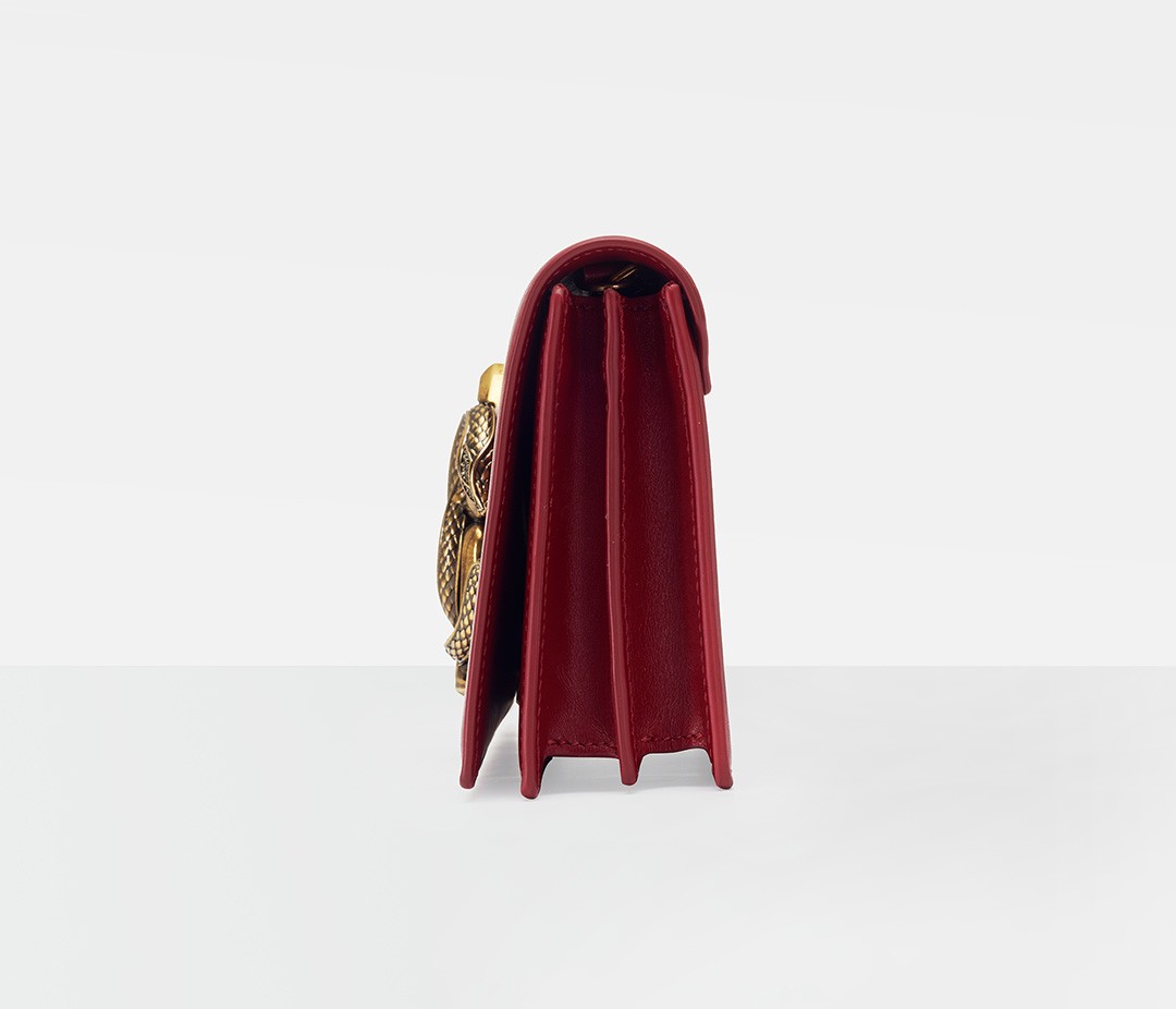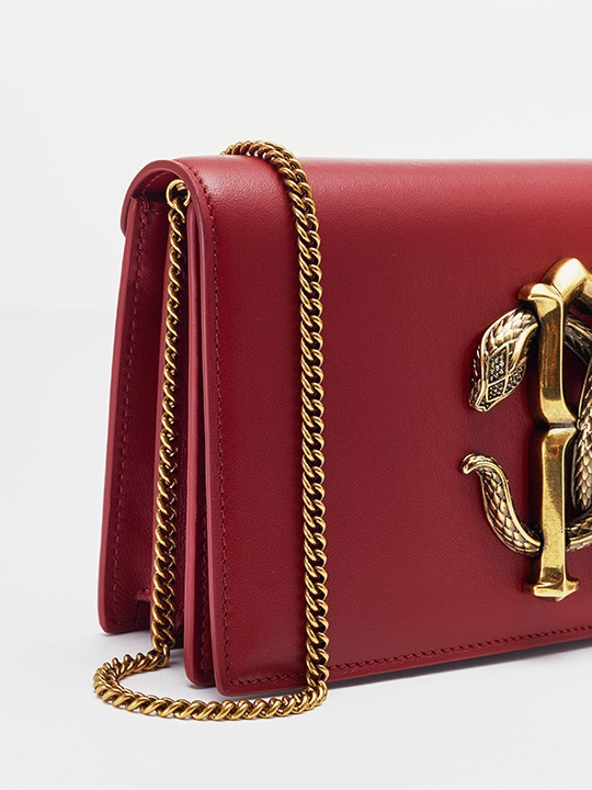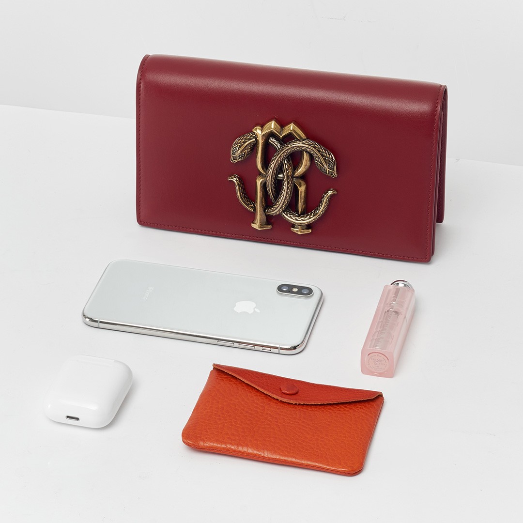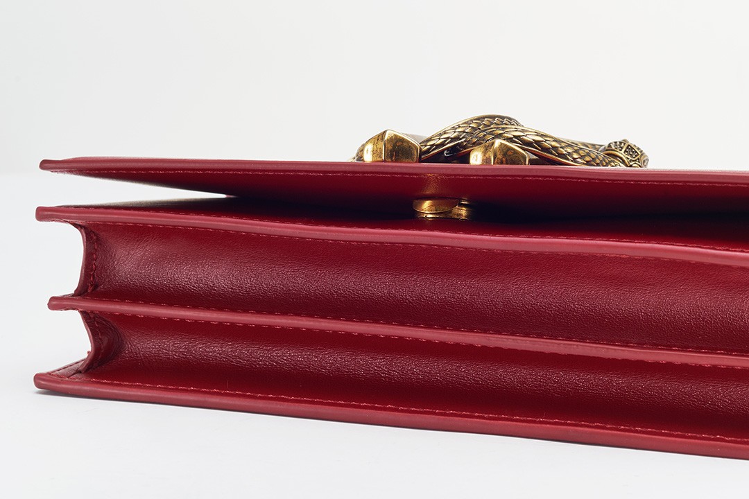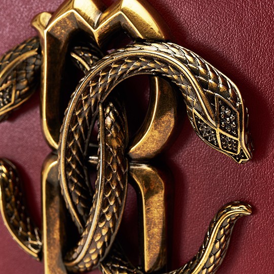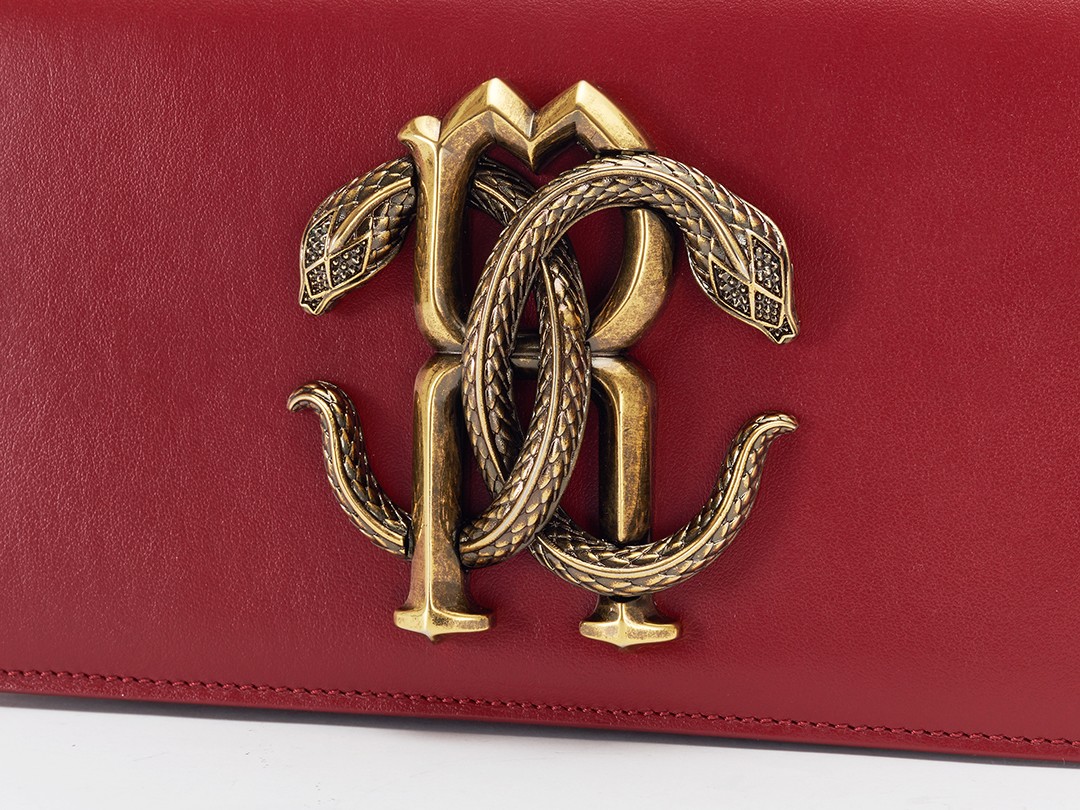 Snake is one of the iconic elements of Roberto Cavalli. The most direct expression is the "Mirror Snake" logo designed by the founder himself. Two symmetrically intertwined mirror snakes present the double C letters, winding around the letter R, symbolizing sexiness, charm and wisdom.The retro copper mirror snake decorative buckle is the soul element of this bag. The exquisite carving process presents details such as snake scales, snake spine, snake letter, eyes, etc. The distressing and polishing process highlights the layering and three-dimensional sense, exuding a retro Gothic temperament .