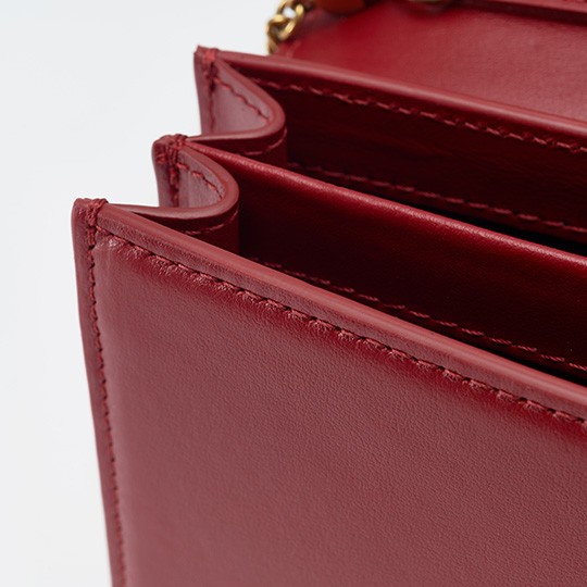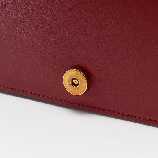 Although it is light and compact, this bag is thoughtfully equipped with double compartments and inner pockets to hold a mobile phone, coin purse, lip gloss and credit cards.