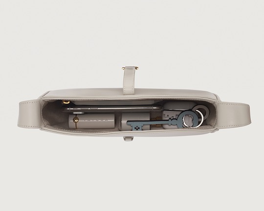 The lining is suede, with a main compartment and a zipper pocket. We put iPhones, card holders, keys, tissues, lipsticks, perfumes, Airpods headphones and other items in the bag. It is stress-free for daily use, and the bag is very light, giving off a cool and casual tone when worn.