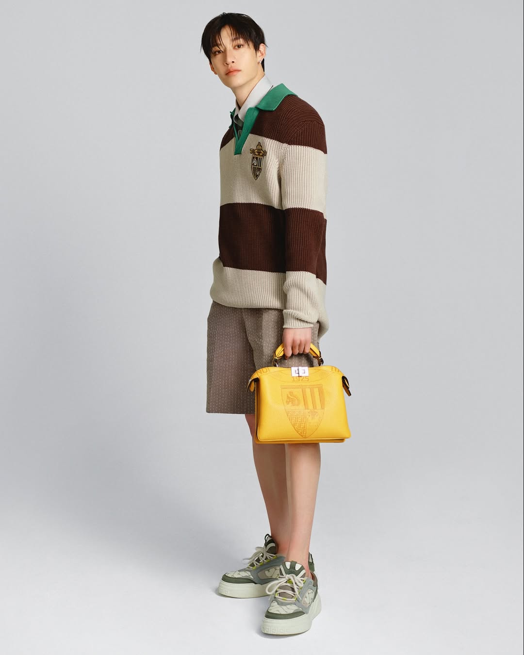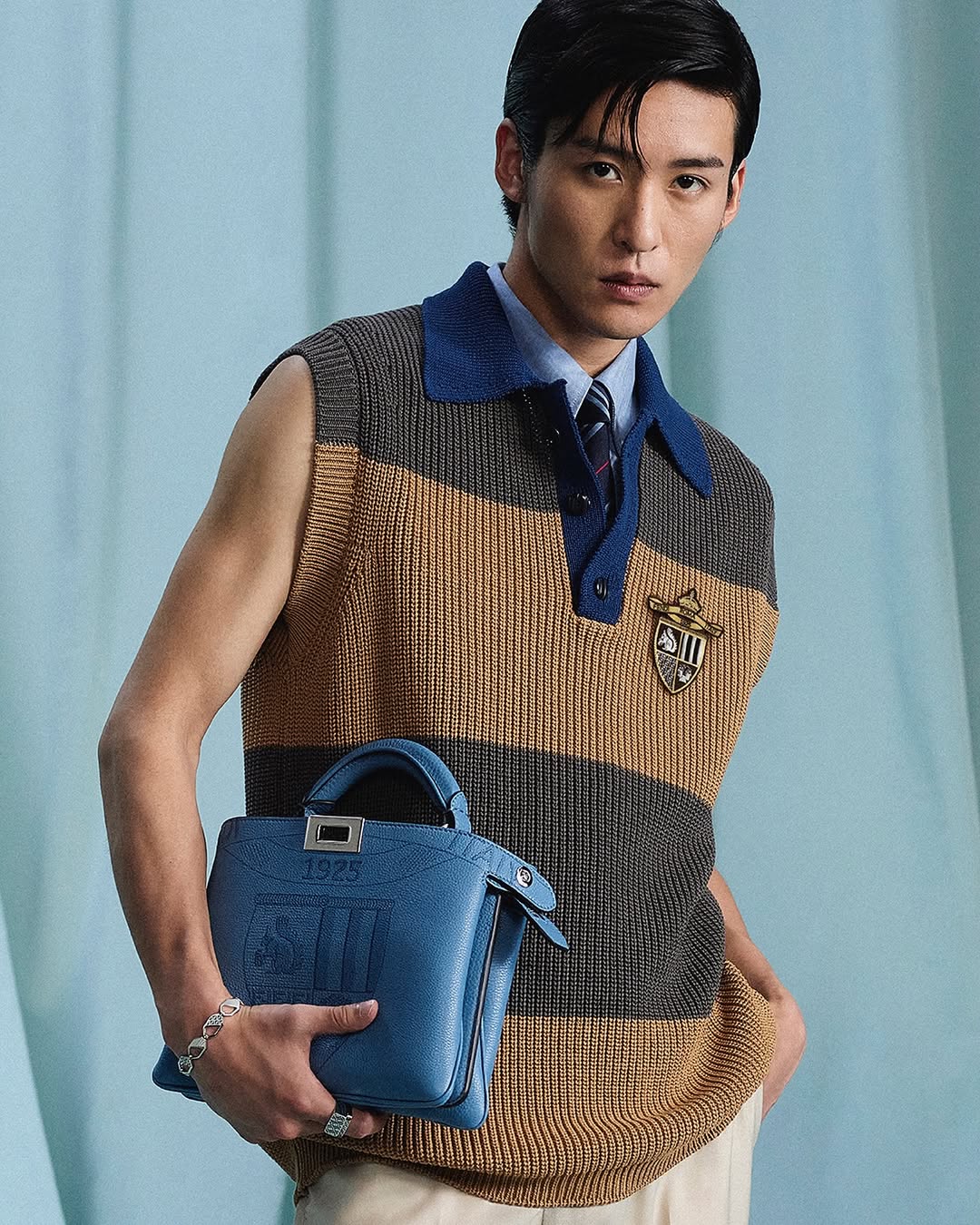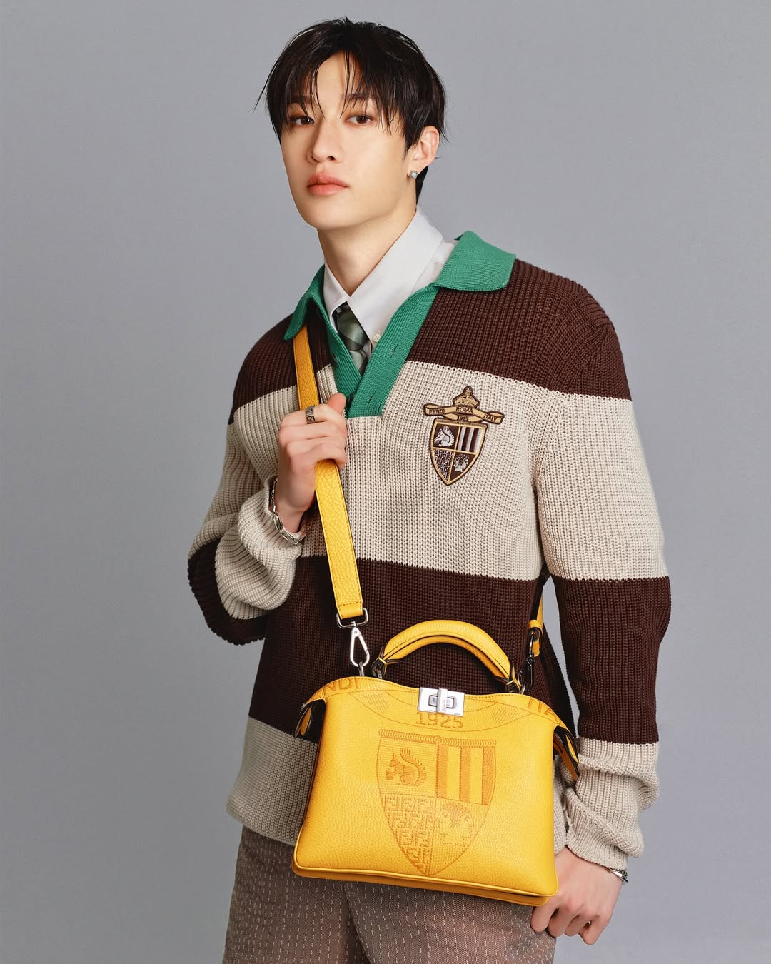 This handbag is available in two colors: FENDI yellow and light gray-blue . "Yellow" is the representative color of the FENDI brand, and its origin can be traced back to the Pergamena series of suitcases launched in 1933, which was inspired by the yellowish tone of parchment. "Light gray-blue" has a hint of gray in the azure blue, and the fresh and bright colors are full of academic atmosphere.