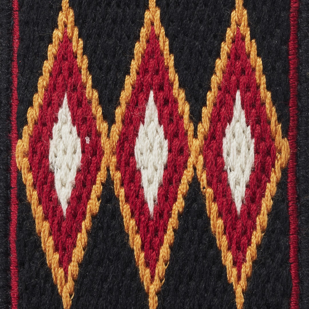 Both shoulder straps are double-sided embroidered , with colorful diamond and zigzag stripe totems on the front, full of geometric beauty.