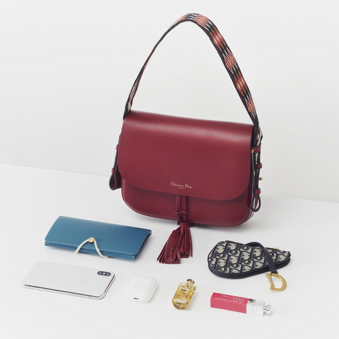 The Christian Dior logo is hot stamped and embossed on the bottom of the flap and the lining, respectively, which is a relatively low-key design.