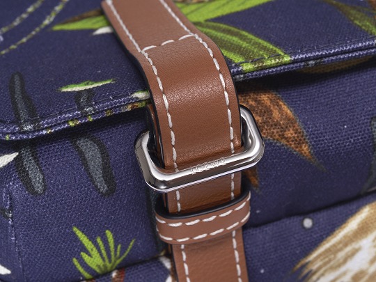 This LOEWE canvas bag is closer to a combination of a messenger bag + camera bag. The main compartment opens and closes with a zipper , the front outer pocket is equipped with a flap and leather buckle , and there is a built-in invisible magnetic buckle at the bottom to ensure safety. There is no socket on the buckle, so it is convenient to open and close.