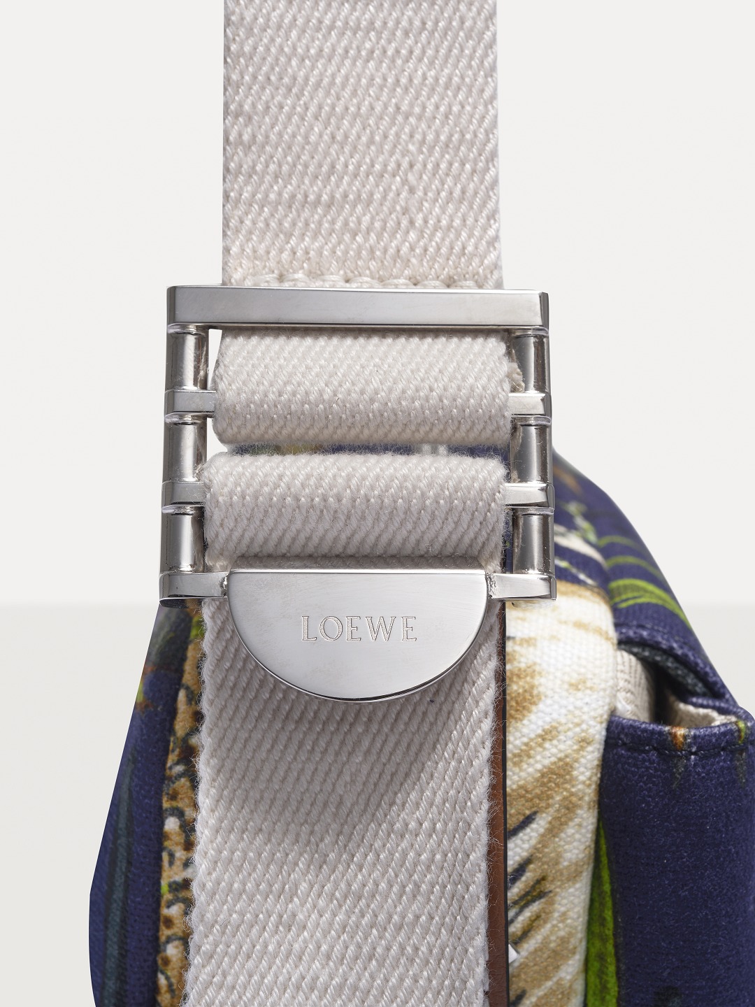 The shoulder strap is equipped with a calfskin shoulder pad , which makes it more comfortable to carry. The end connected to the bag body is sewn with LOEWE's iconic Anagram leather label , which consists of 4 mirrored floral L letters.