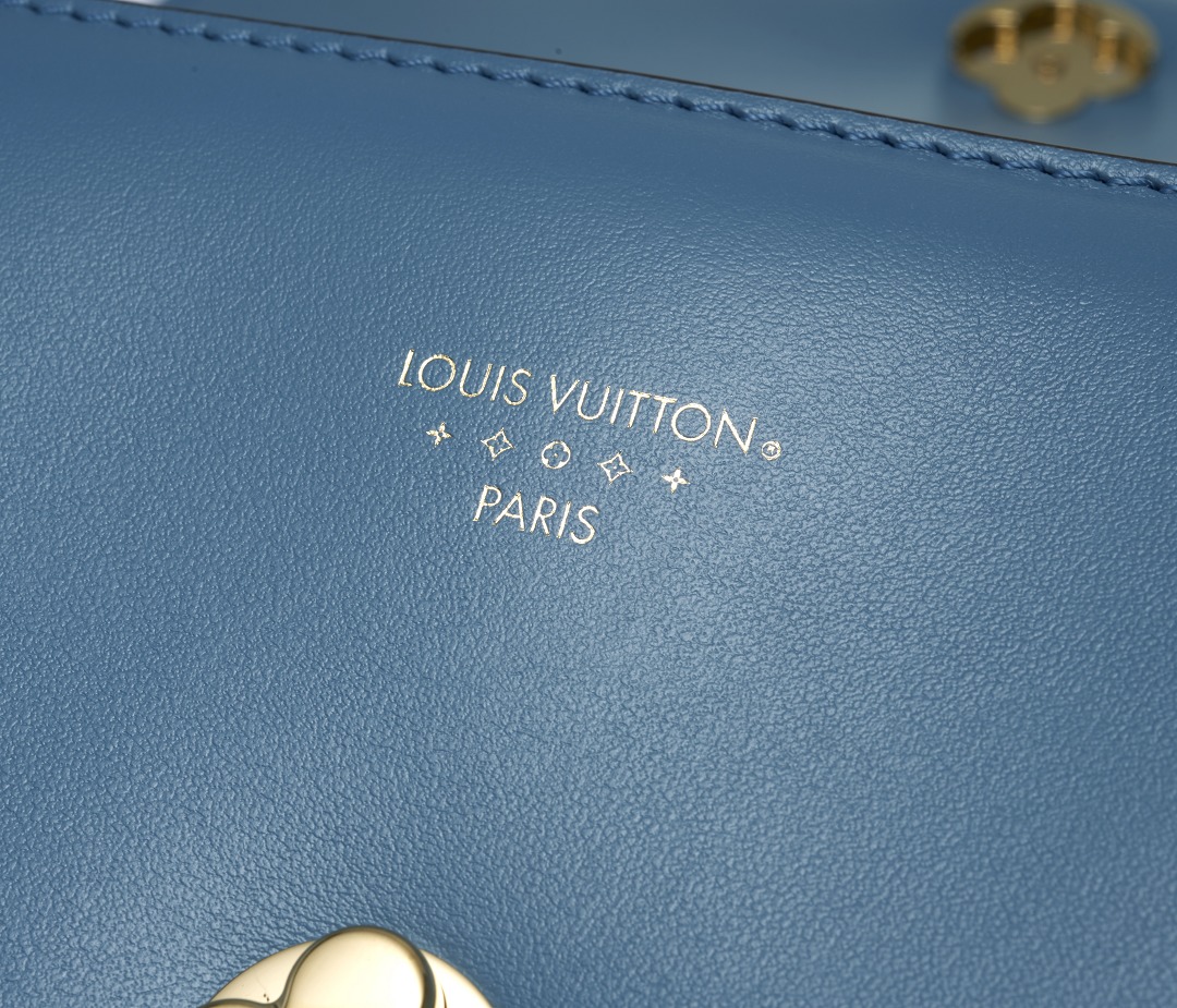 When we open the bag, we can see that the metal magnetic buckle is engraved into the shape of a Monogram four-petal flower , which is elegant and recognizable; the leather is hot-stamped with the brand logo.