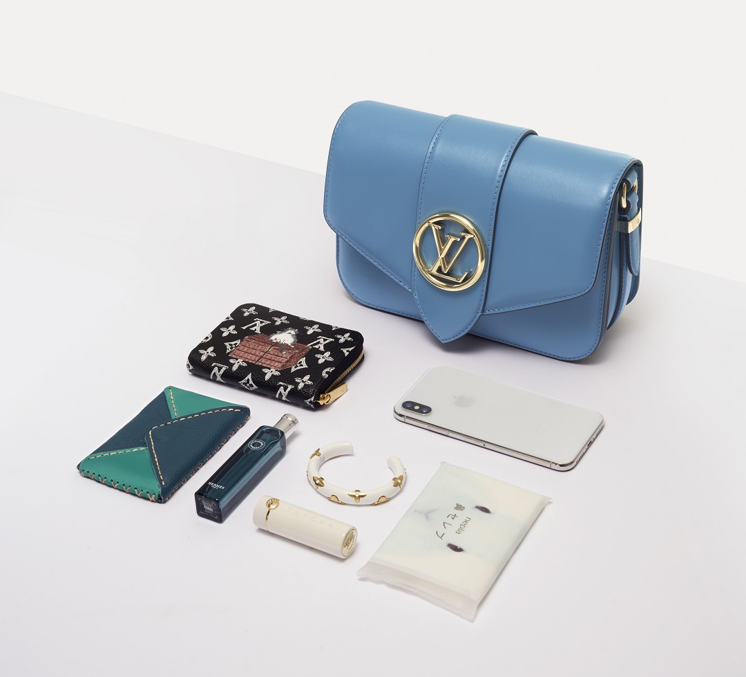 We put an iPhone X, a coin purse, a card holder, perfume, lipstick, bracelets and tissues in the bag. The Pont 9 handbag has a three-dimensional and crisp shape, and relatively thick items can be stored in it without any pressure.