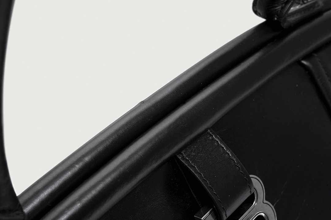 This handbag is made of Paper Calfskin , and you can clearly see the striped texture on the leather, which is like the folds of kraft paper. The black semi-matte texture creates a strong aura.
