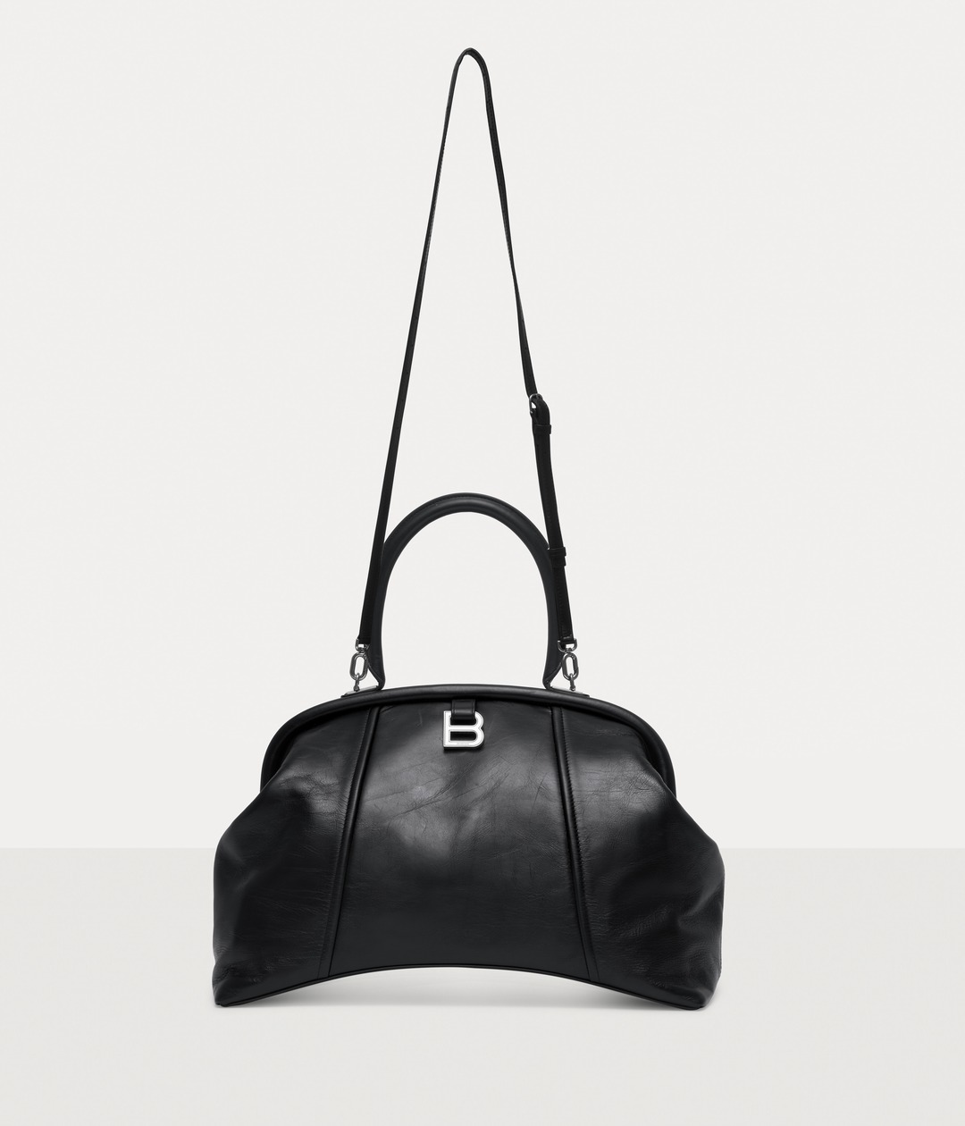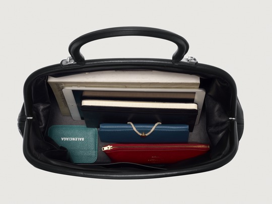 EditorThe large Editor continues the iconic arched base , inspired by the Basque-Waist waist-hugging fashion designed by the brand's founder Cristóbal Balenciaga; the Editor presents a crisp, soft and full bag shape, like a travel bag.