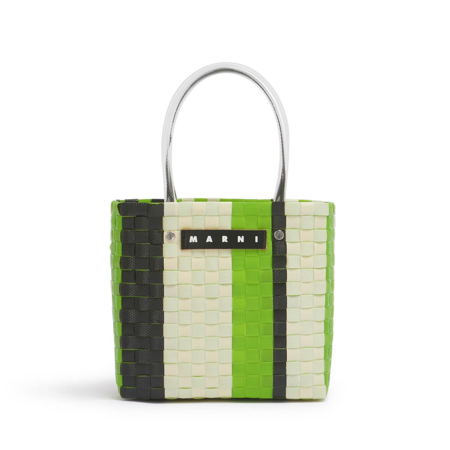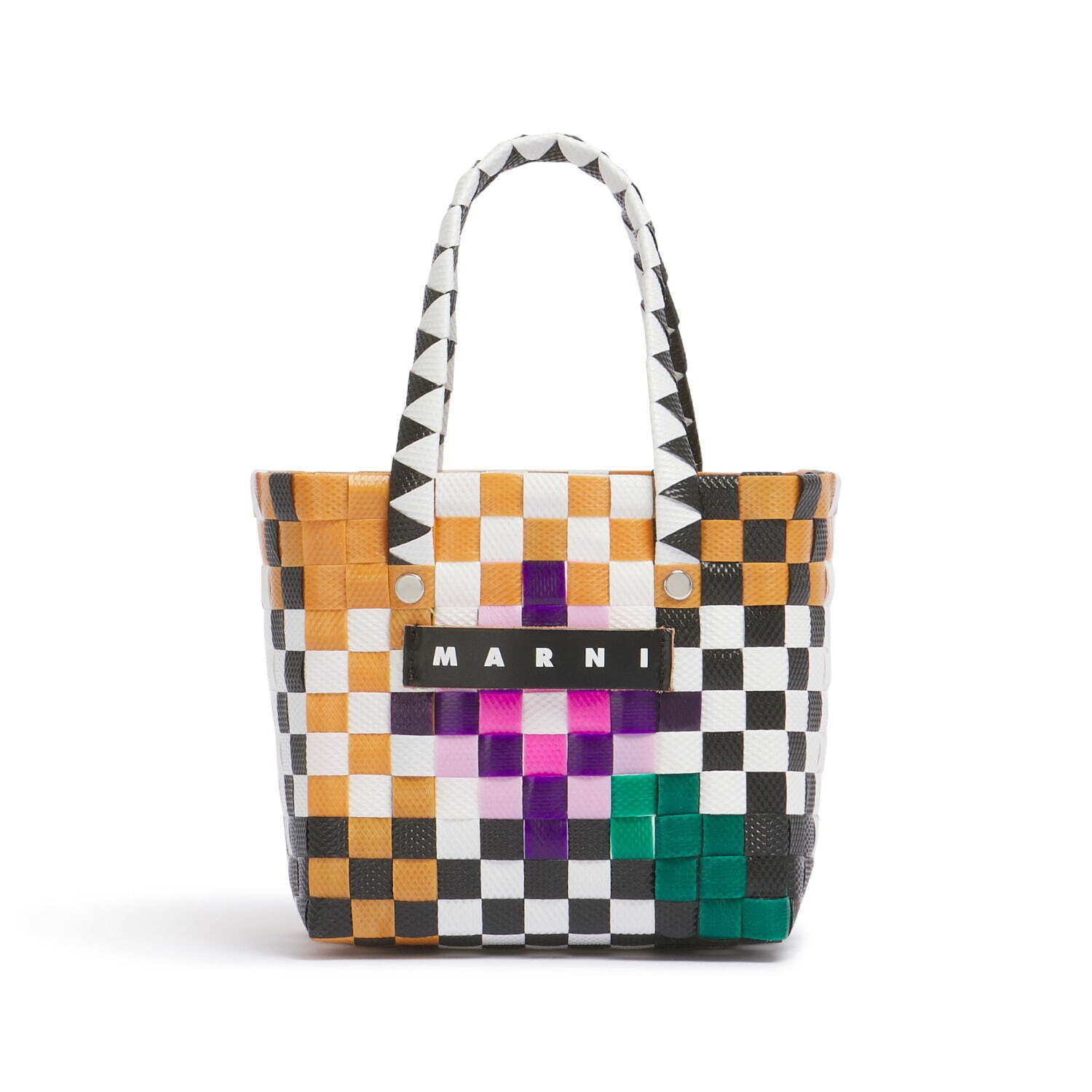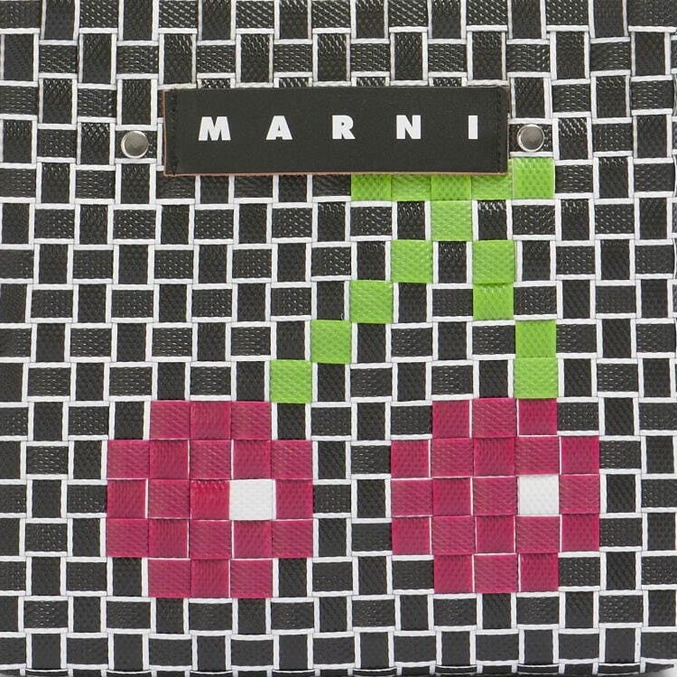 Marni's iconic hand-woven basket bag has a new style this summer. The bag body is made of hand-woven multi-colored strips . The highlight is that the bag body uses colorful blocks to present pineapple , apple and cherry patterns, which are reminiscent of retro pixel-style games. The colorful fruit patterns give people a juicy summer feeling.