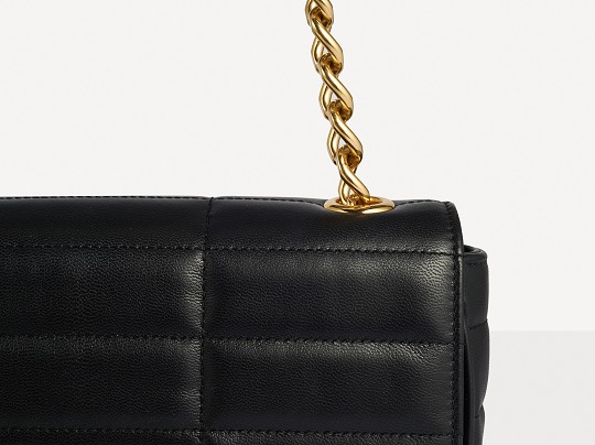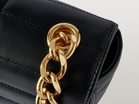 The chain shoulder strap adds a modern touch to the bag, with a brass chain with cut and polished sides, which is rugged and tough, contrasting with the retro quilted check. The diamond-cut gold chain is a collection design of the brand, inspired by the metal chains around the Arc de Triomphe in Paris .